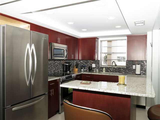 Newer remodel. Large 2/1/1. Spectacular open floor plan kitchen with island. Kitchenaid stainless appliances, granite counters, glass tile backsplash, cherry wood cabinets, recessed lighting in kitchen. New impact glass windows and slider. Jack/Jill shower with glass tile, rain head plus shower wand in oversized frameless glass enclosure. Complete closet build outs in walk ins for both bedrooms. 13 foot wide bay window offers serene canal views in famous Coral Ridge. Walk to restaurants and beach.