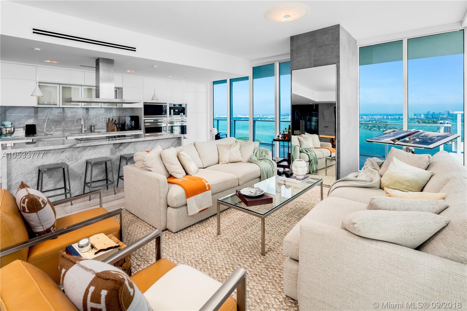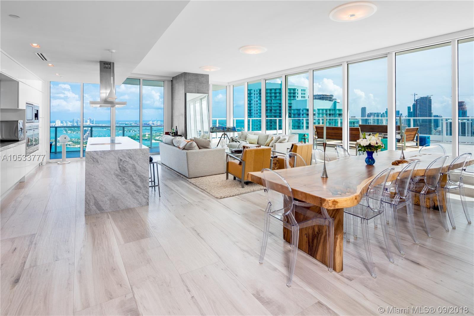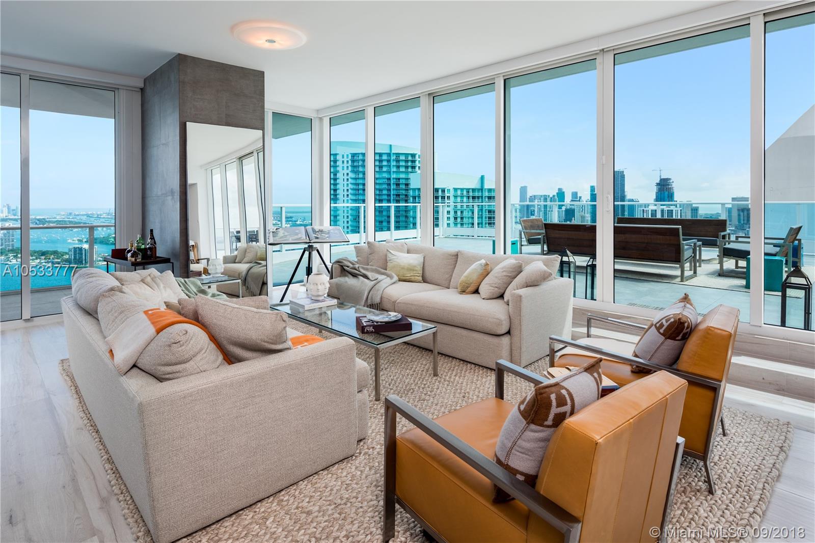 Live in ultimate luxury in this one-of-a-kind smart home in the sky. Boasting an expansive 2,300+ sf entertaining deck w/ a book matched marble outdoor jacuzzi and marble summer kitchen offering sweeping views of the ocean, downtown skyline & sunrises/sunsets, this residence is an entertainer’s dream. Offering 4BR/4+1BA this 2,845 sf unit comes fully furnished w/ a world-class photography collection and high-end furniture throughout. Featuring top-of-the-line technological integration, the entire home can be controlled/monitored from anywhere in the world & includes a 22,000 watt Devialet speaker system, floor-to-ceiling windows w/ stunning views from every room & an expansive modern layout master bedroom. Luxury amenities: 24hr concierge/security, sunrise/sunset pool, full service gym/spa