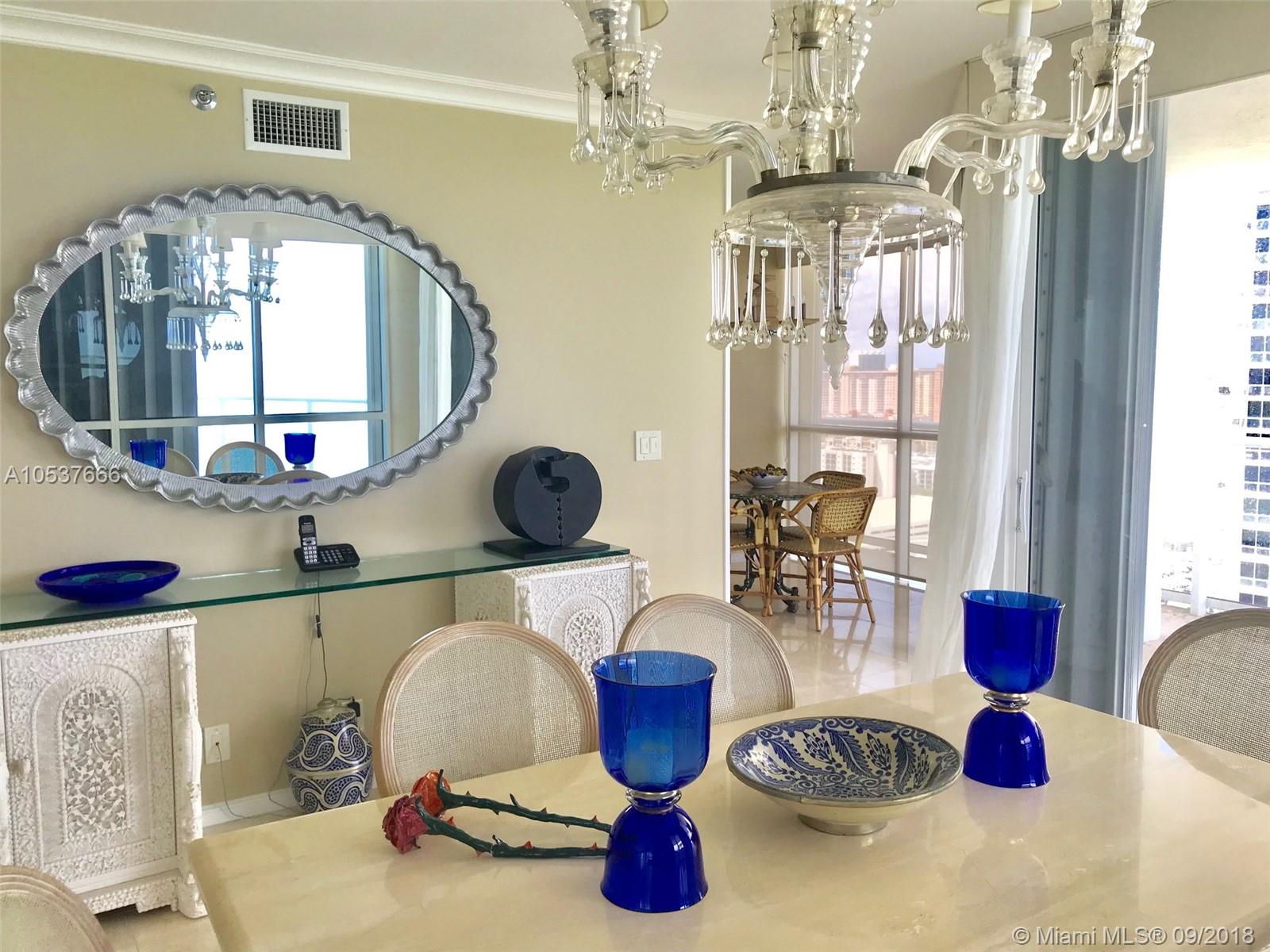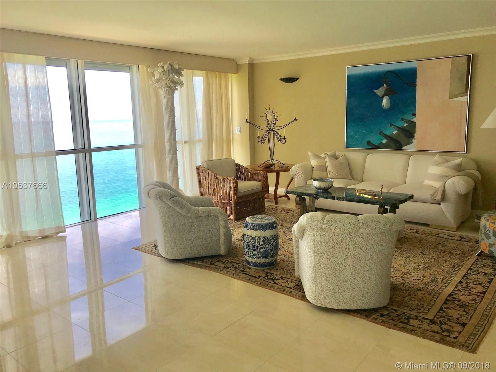 Breathtaking 24th Floor Direct Ocean Front Corner. 2,020 sq. ft. Was a 3 bdrm. Now Large 2 Bedroom 2 1/2 bath - with Marble Floors, New Kitchen appliances. Price includes cabana #8 5 Bldg. Resort Fully Renovated with private Restaurant, fitness center, beach service, full service spa, tennis courts, Marina, & concierge service. Great opportunity! Easy to Show!