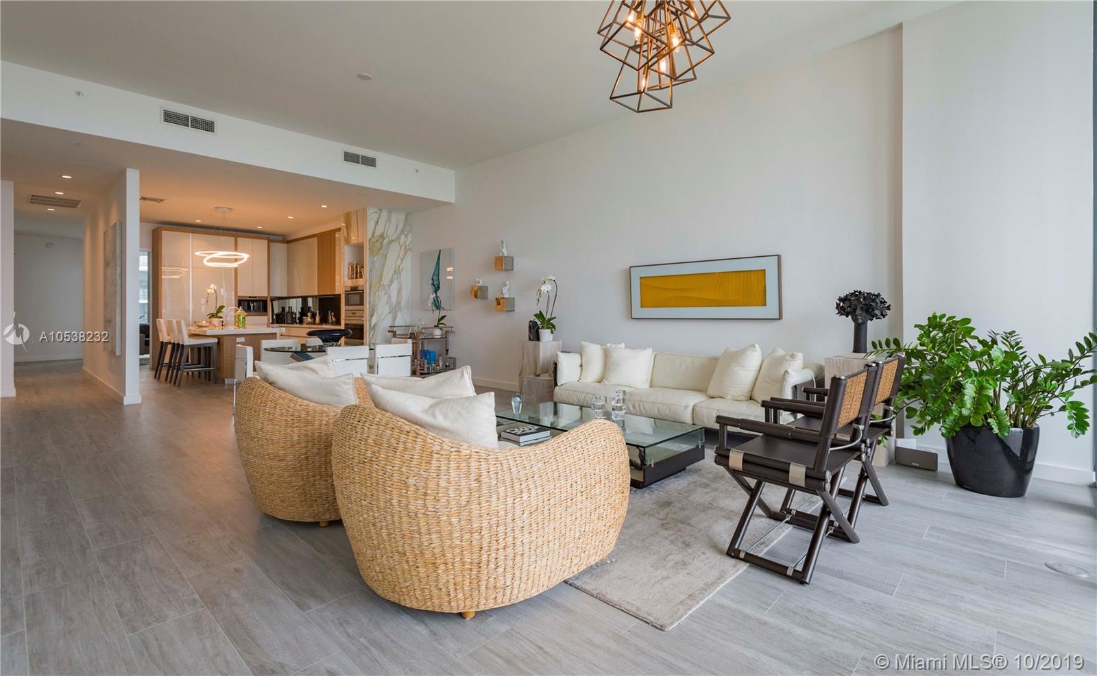 An amazing lifestyle awaits within this sought-after Park Grove Condominium. The expansive, luxuriously appointed, neutral-toned residence features three bedrooms, three bathrooms, a fourth bedroom option and a powder room. Covering 2,884 sq ft and a nearly 400-sq ft balcony with direct Bay and city views, the interior space boasts rectified porcelain floors throughout, 12-foot ceilings, kitchen and baths by William Sofield including Italian cabinetry and exquisite stone counter-tops. A team work by OMA–Rem Koolhaas and world class designers and developers, Park Grove beautifully combines the rich culture and lifestyle of Coconut Grove with a modern/innovative design flair. The 5-star amenities include resort-style pools, cabanas, wine cellar, fitness rooms, spa, concierge, valet and more.