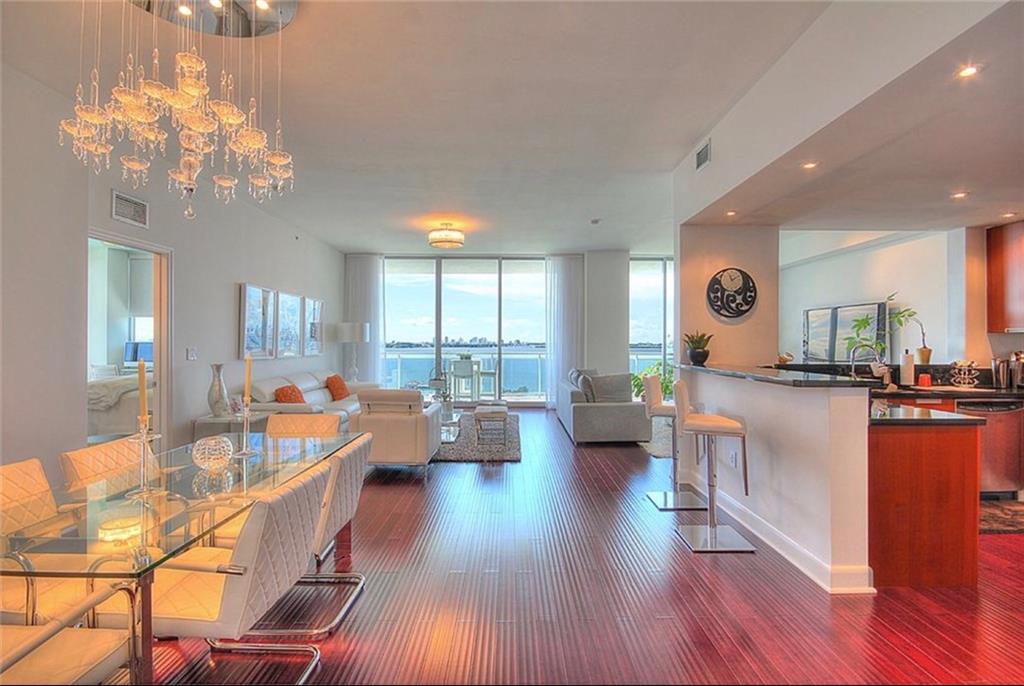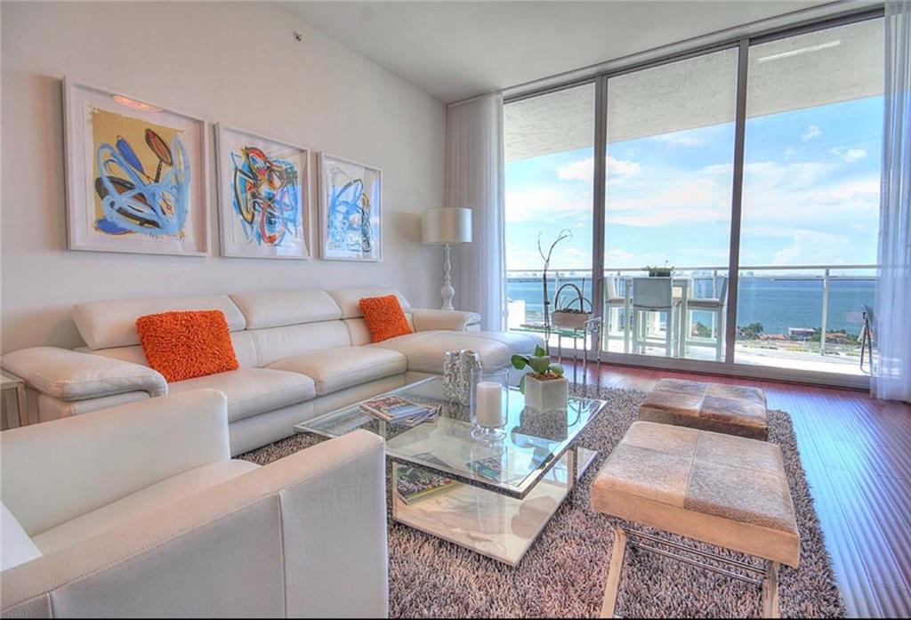 Elegance meets sophistication: Unit 1712 at The Lexi Bayview Residences in North Bay Village has it all! Boasting 1,753 square feet, this high-floor corner unit features 10 foot ceilings with unobstructed views of the Biscayne Bay and Downtown Miami Skyline from every room. Fully furnished by TUI, Unit 1712's appeal will not cease to captivate the most meticulous of residents and guests alike. An open and spacious floor plan allows for entertaining, while the expansive wraparound balcony captures more than 180 degrees of water. Unit 1712's open and modern kitchen provides plenty of storage, as well as offering a casual dining experience at the breakfast bar-top. The Den currently serves as an extension of the living and entertainment area, but may be closed off as a third bedroom.