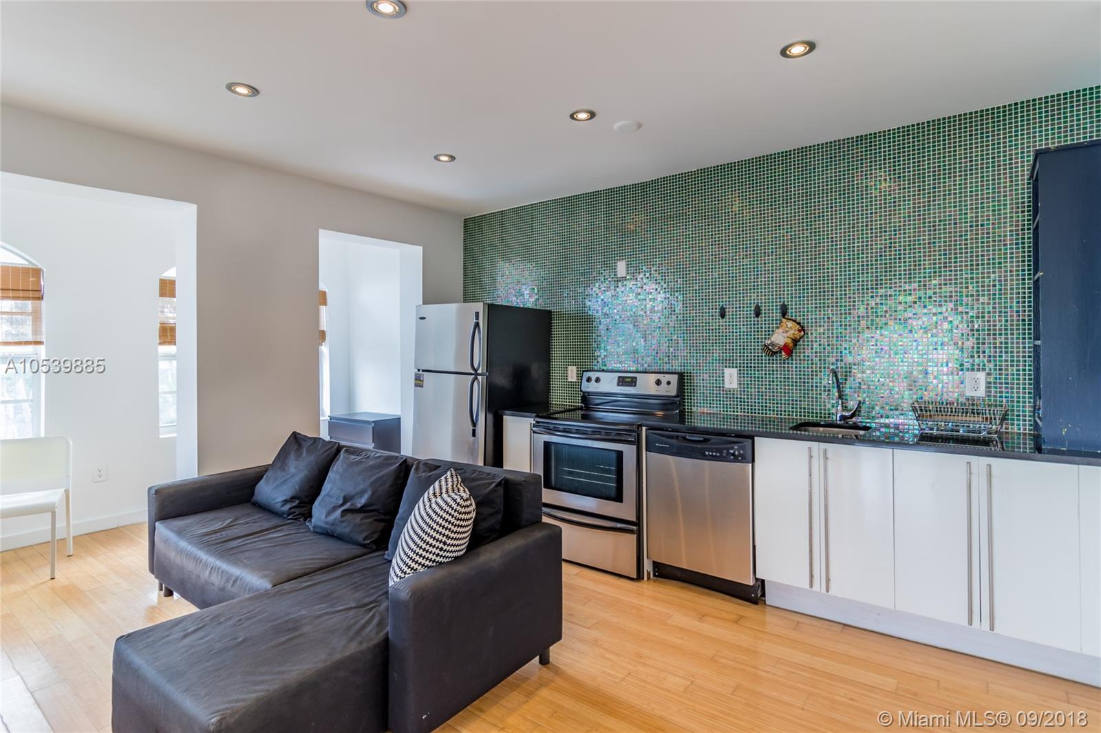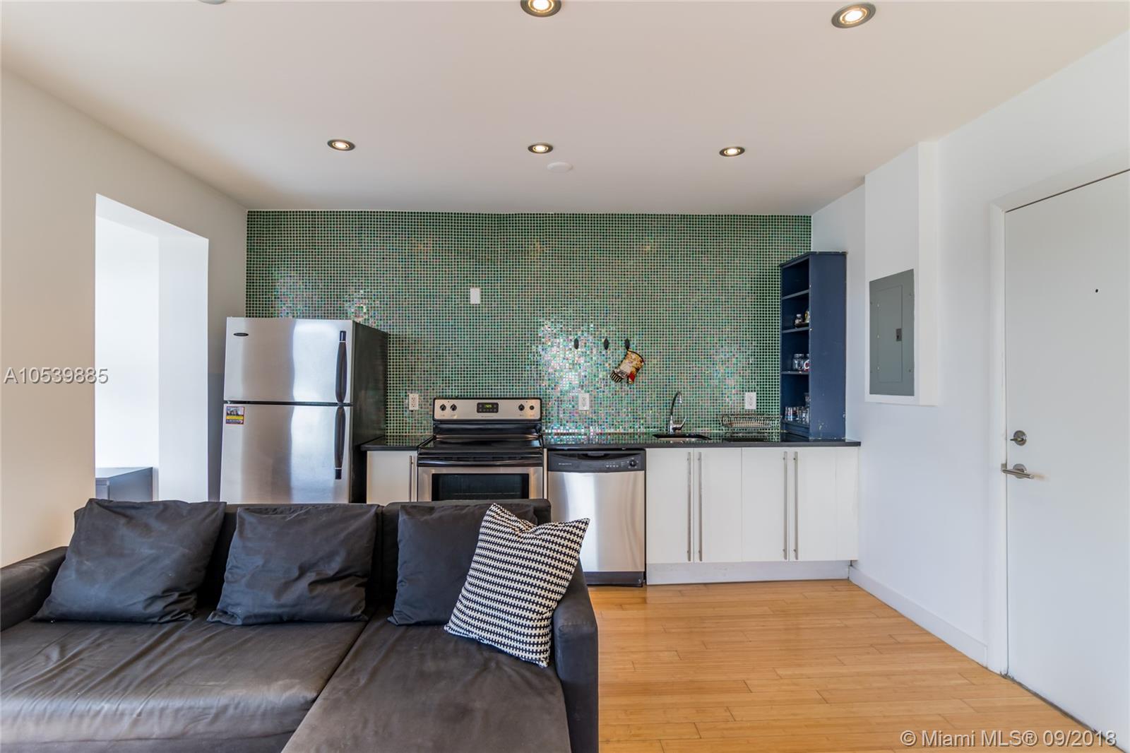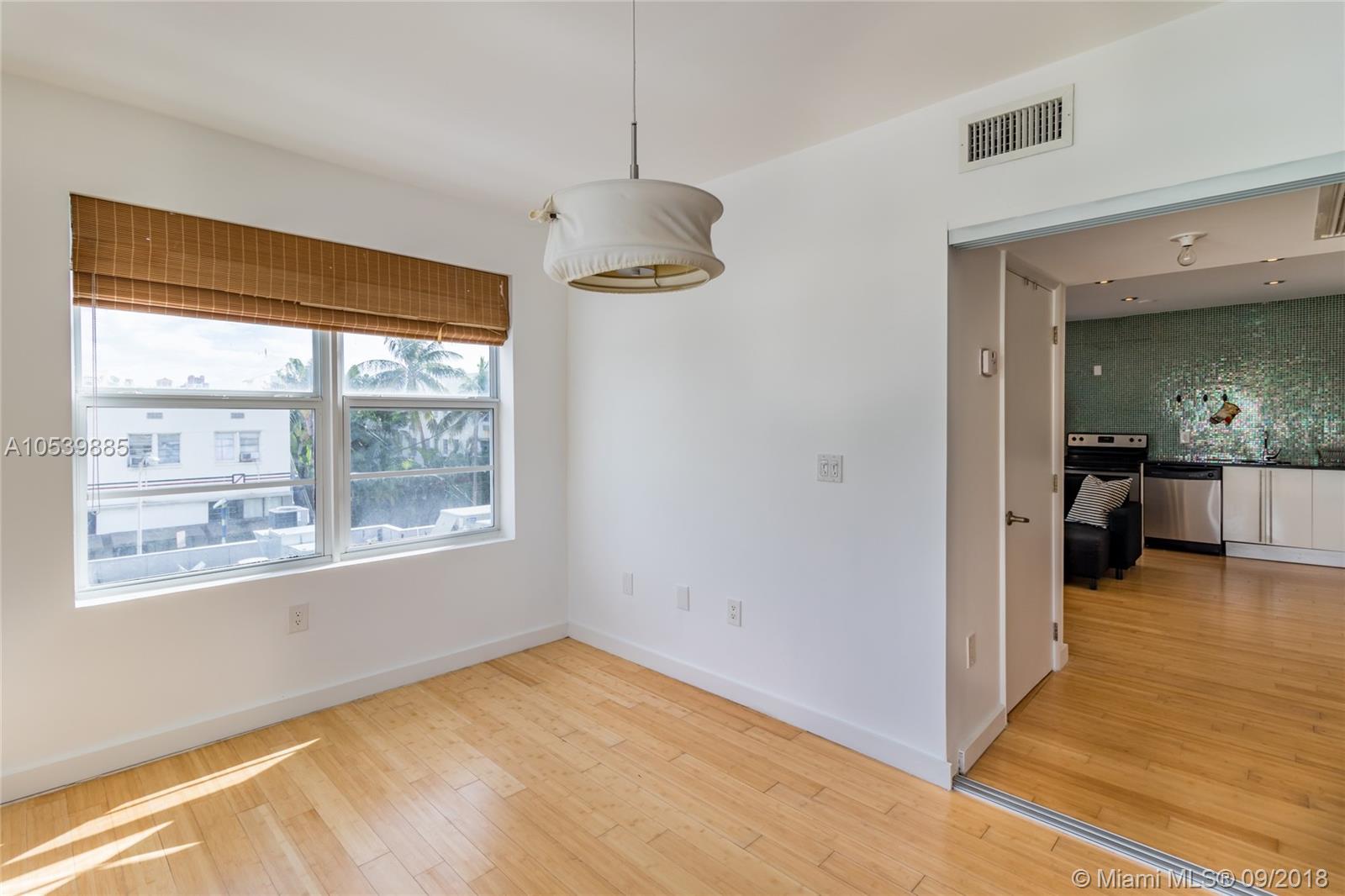 In the middle of all of the action!!! This top floor corner residence is flooded with light through corner windows, a great open floor plan with separate bedroom area and full kitchen. Steps from the ocean, Lincoln Road and everything South Beach, this renovated condo unit features European kitchen cabinetry with stainless steel appl, Duravitt bath sink, and Bamboo hardwood flooring and central air. This well kept building offers a recently updated lobby entry, common outdoor area and laundry on premises.