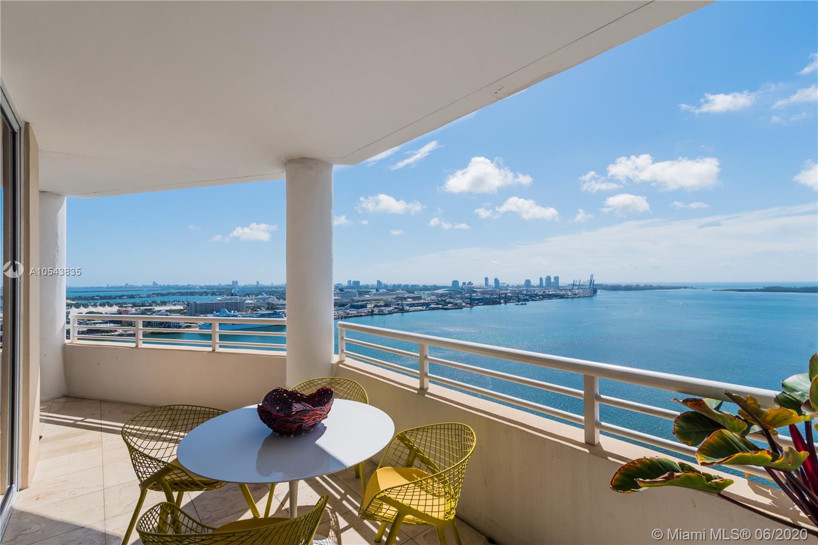 Espectacular corner unit with breath-taking water views overlooking the port of miami, miami beach, key biscayne and the bay, 3 bedrooms and 2 and half bathroom, marble floors thought-out, and porcelain wood floors on the bedrooms area, custom made closets, italian kitchen, granite counter-top, stain steal appliances, wall covering, very bright unit and very spacious... first time on the market