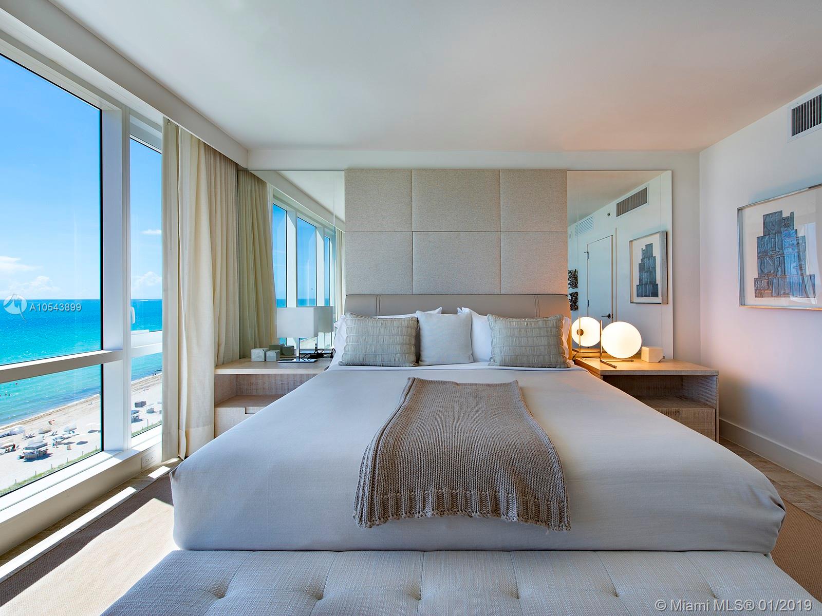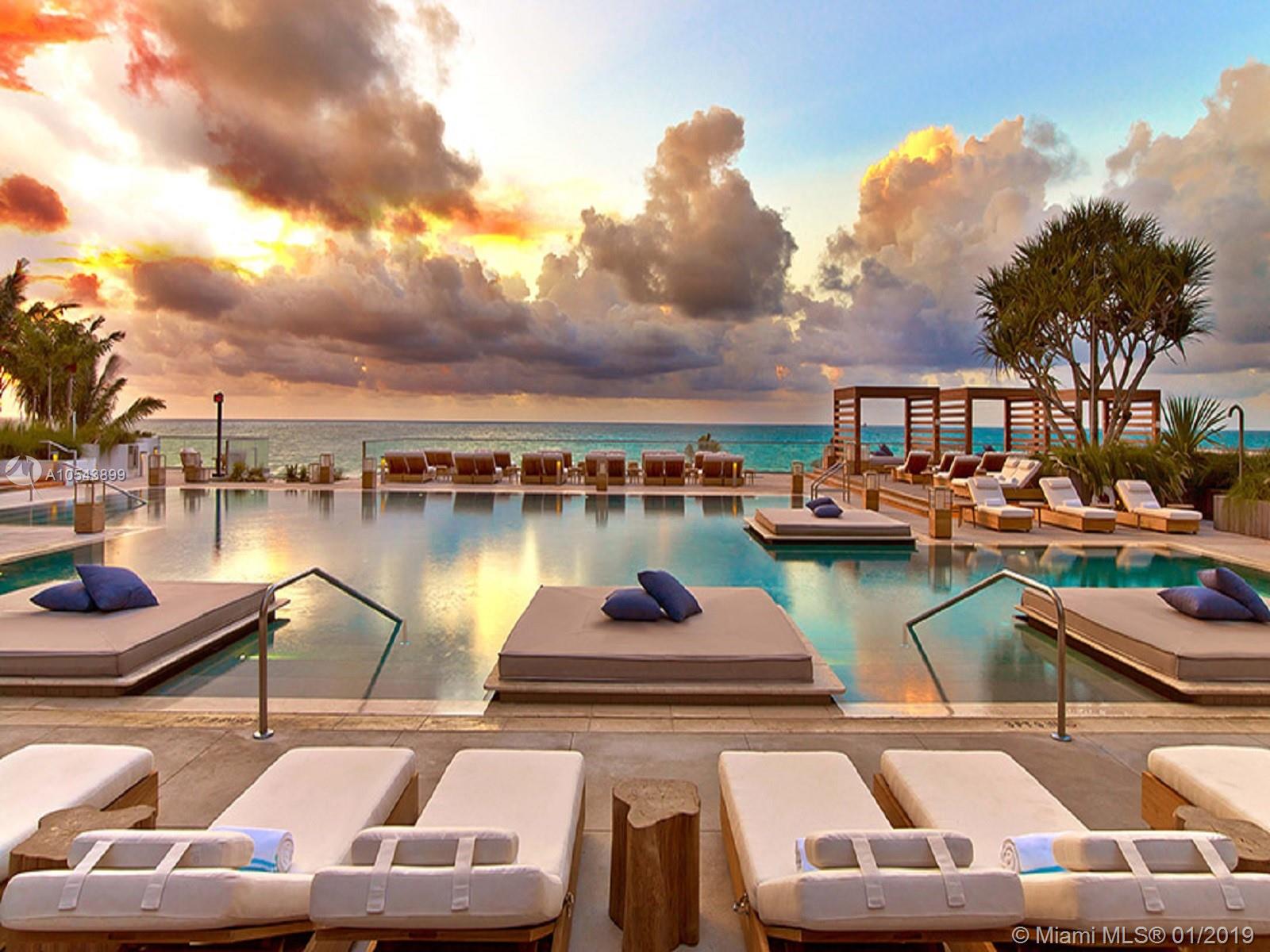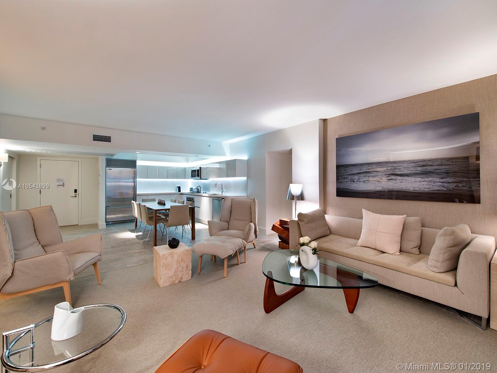 Breathtaking, direct ocean views from this tastefully designed 1 Hotel & Homes unit 1219. This 3-bed/3-bath residence offers the exquisite 1 Hotel furniture package from Debora Aguiar, blending modern-style with earthy beach tones while integrating the nature of South Beach. Custom kitchens created by Italkraft feature stainless steel appliances by Sub-Zero & Bosch, Grohe fixtures & Kohler sink basins. Appreciate the soothing ambiance of resort-style living with 4 pools including a rooftop pool, 14,000 SF fitness center, luxurious Bamford Spa, pool & beach service. Food is farm-stand fresh at seven unique dining outlets, including their newest signature restaurant, Habitat by Jose Mendin, Plnthouse by Matthew Kenney, Watr at the 1 Rooftop, Nativ Made, The Sandbox, the Lobby Bar & more.