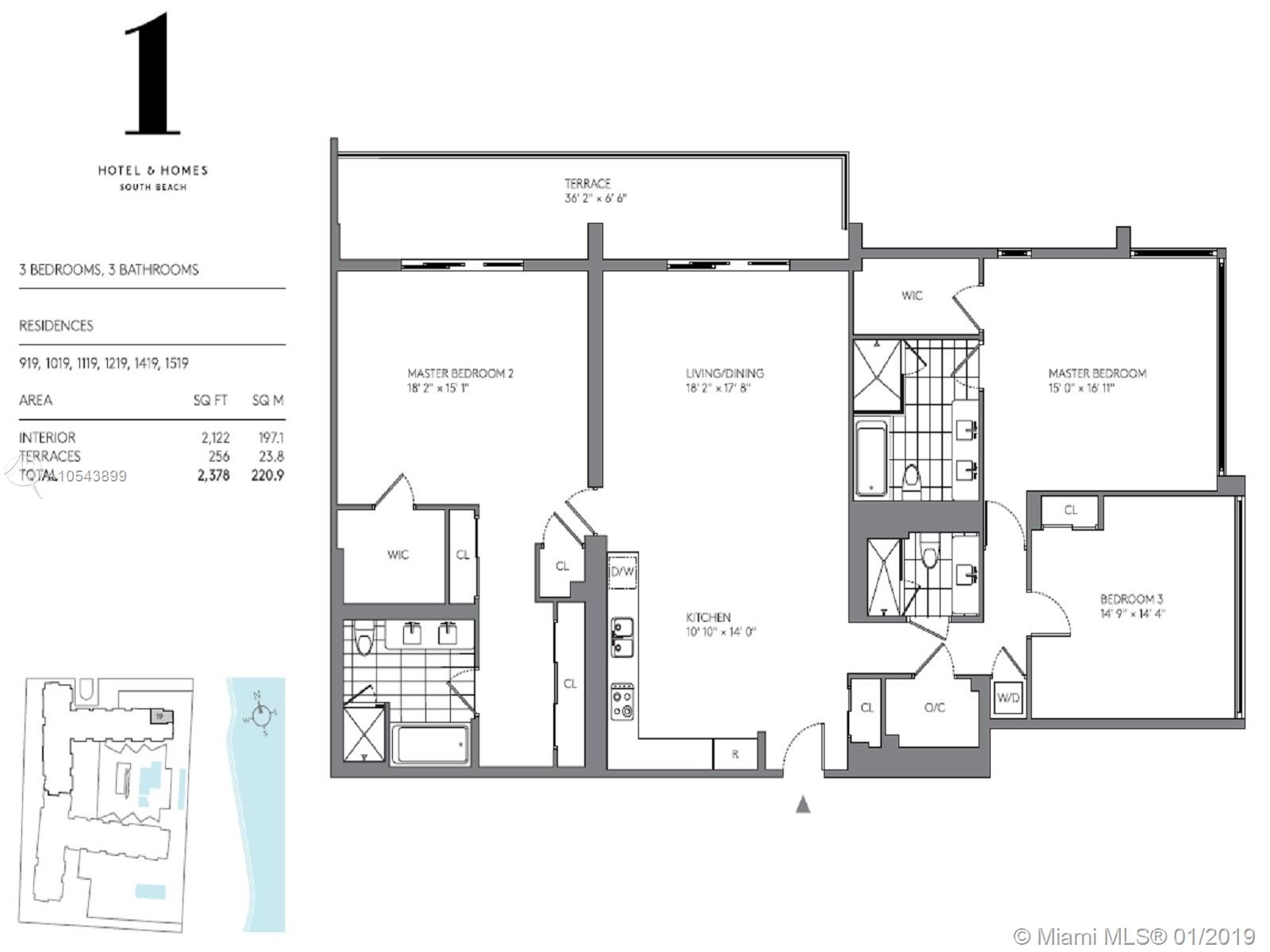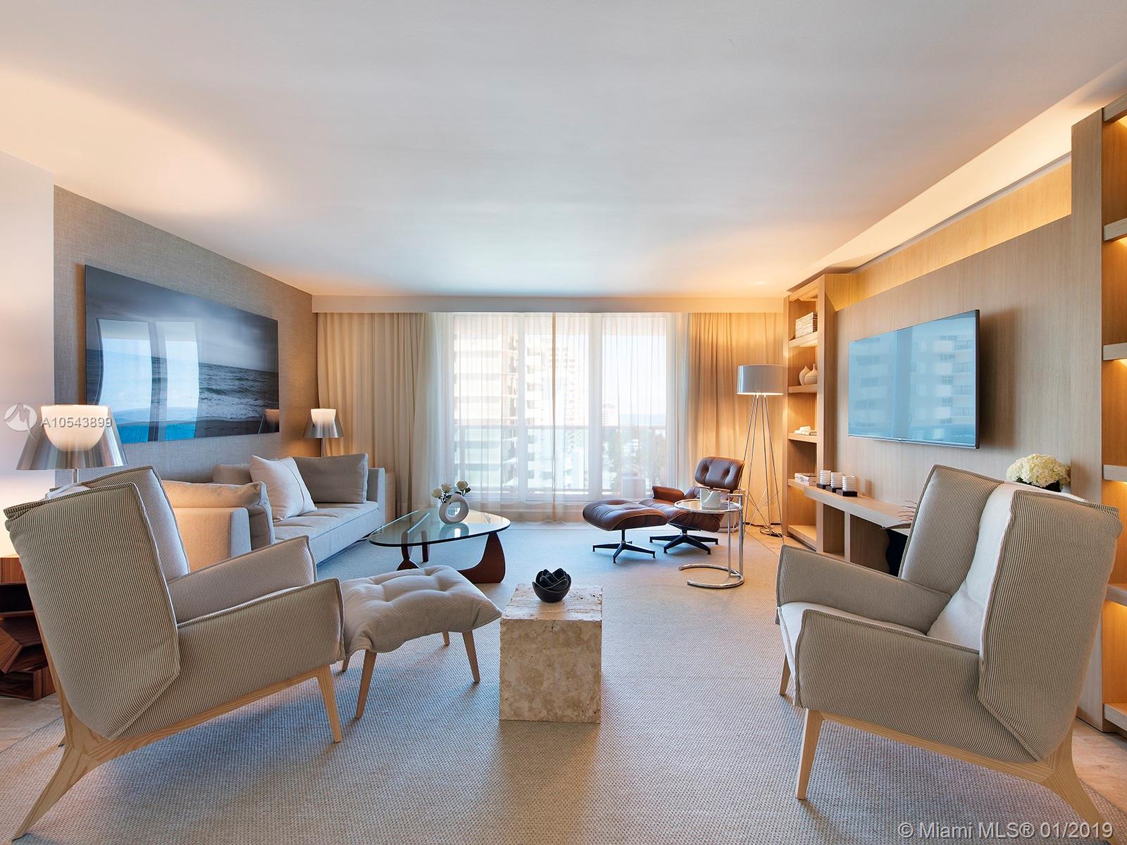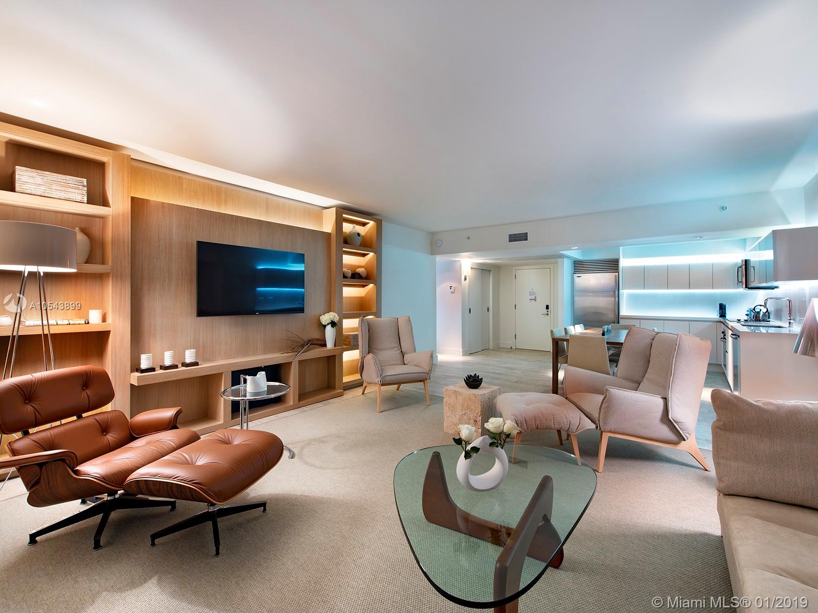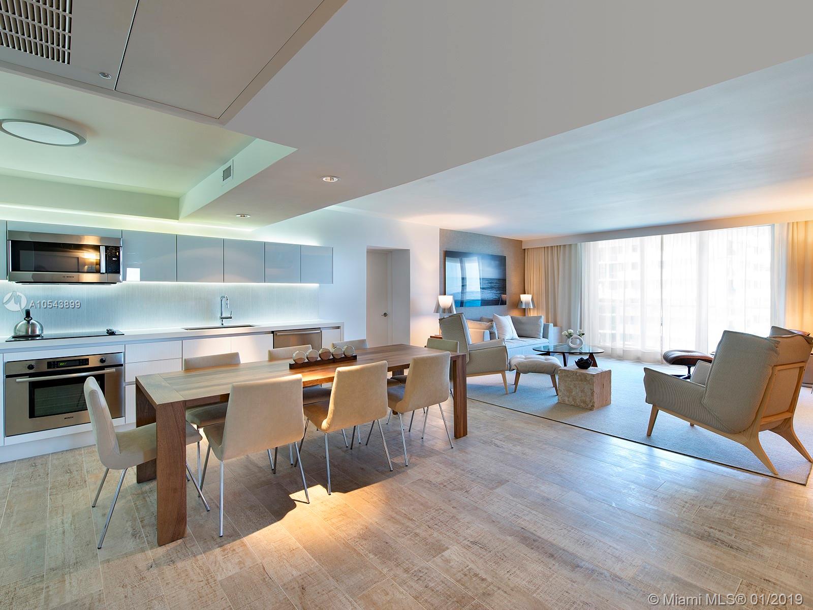 Breathtaking, direct ocean views from this tastefully designed 1 Hotel & Homes unit 1219. This 3-bed/3-bath residence offers the exquisite 1 Hotel furniture package from Debora Aguiar, blending modern-style with earthy beach tones while integrating the nature of South Beach. Custom kitchens created by Italkraft feature stainless steel appliances by Sub-Zero & Bosch, Grohe fixtures & Kohler sink basins. Appreciate the soothing ambiance of resort-style living with 4 pools including a rooftop pool, 14,000 SF fitness center, luxurious Bamford Spa, pool & beach service. Food is farm-stand fresh at seven unique dining outlets, including their newest signature restaurant, Habitat by Jose Mendin, Plnthouse by Matthew Kenney, Watr at the 1 Rooftop, Nativ Made, The Sandbox, the Lobby Bar & more.
