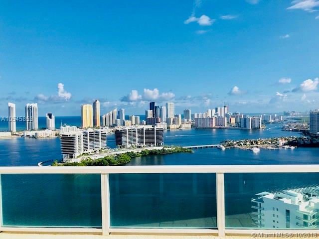 Beautiful and spacious Penthouse 3 bed and 3.5 bath with private elevator. Double high ceilings in living room, stone walls. Spectacular ocean, bay and city views. 3 assigned parking spaces. Plenty of luxurious amenities. Easy to Show. Ready to move in. Call L.A for showings instructions.