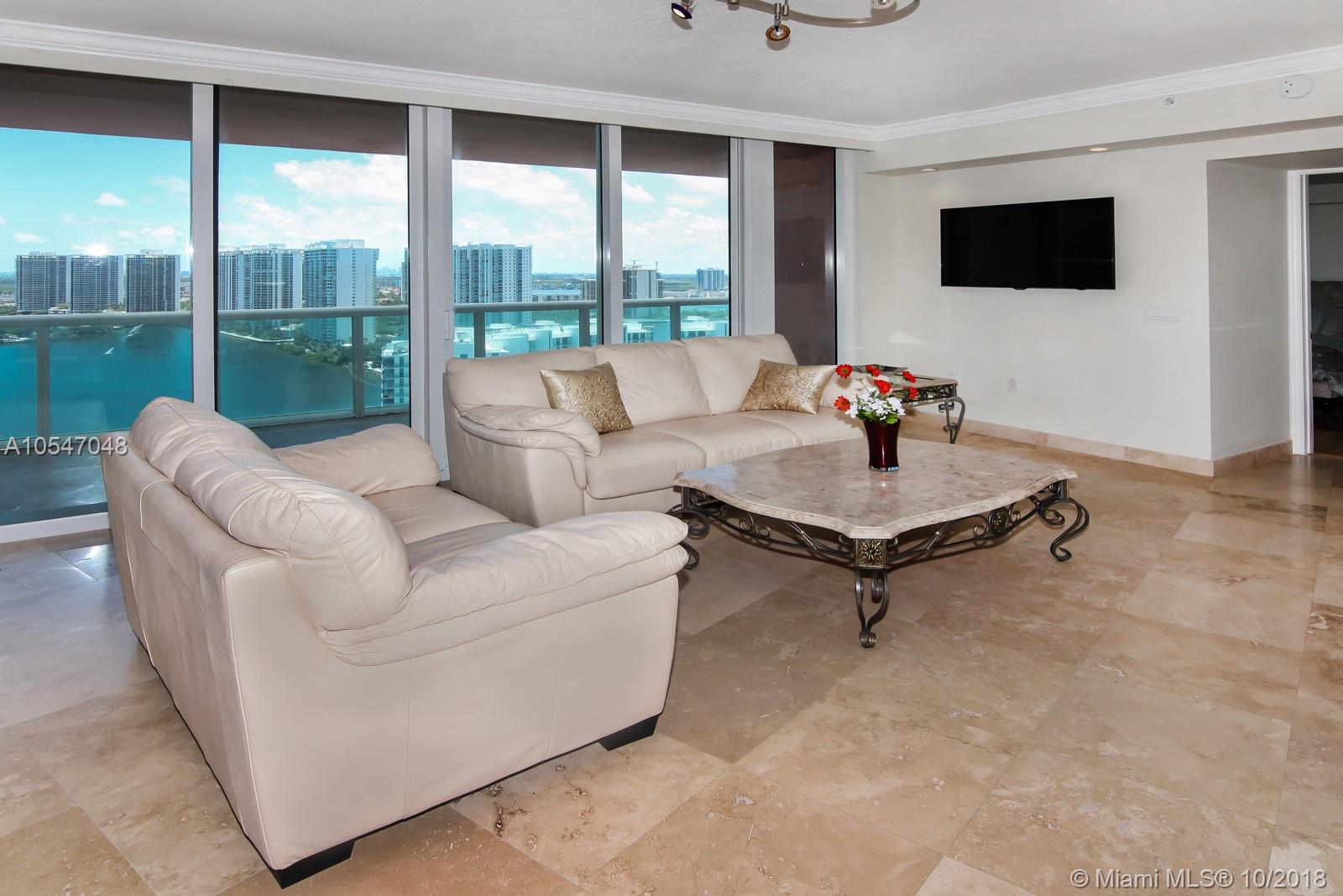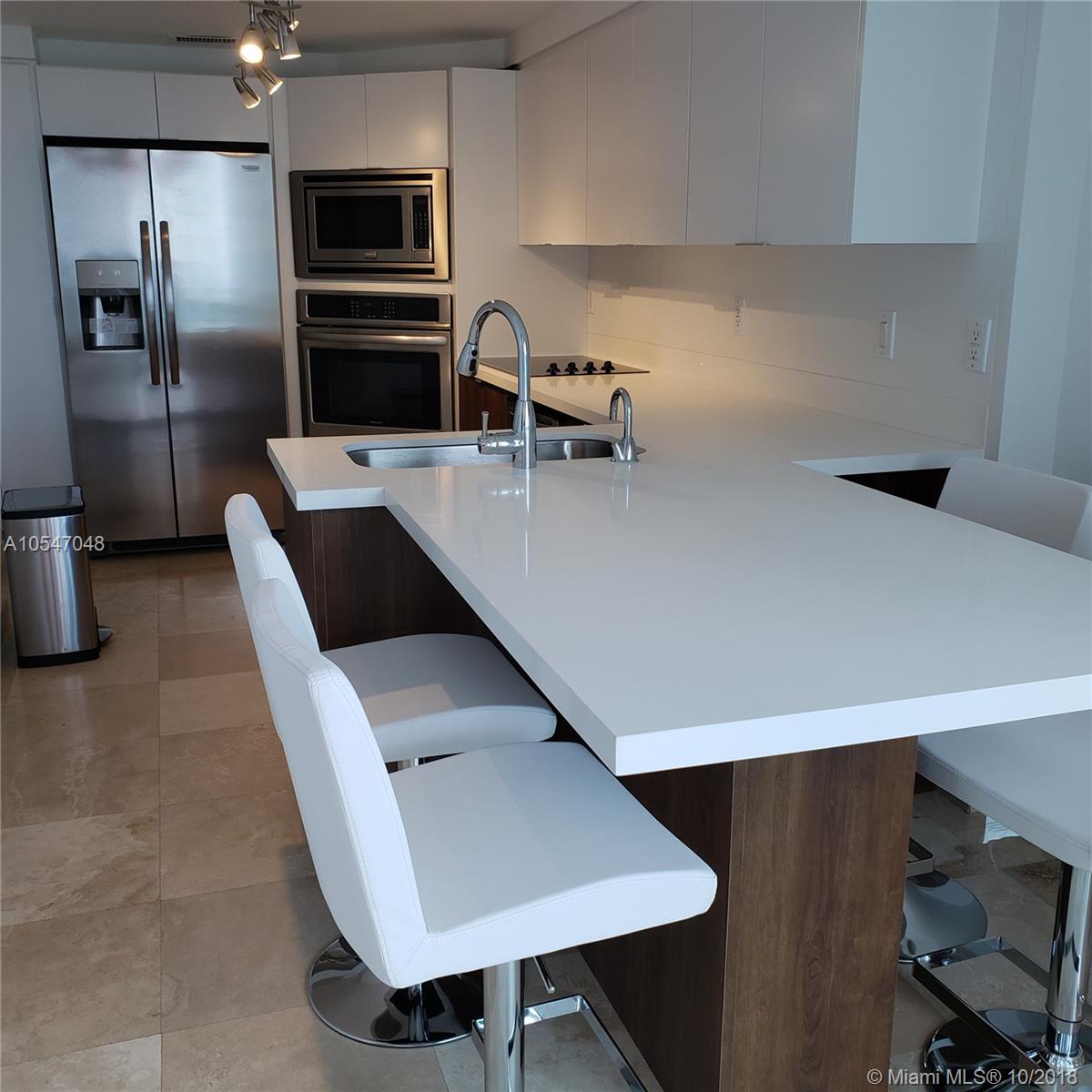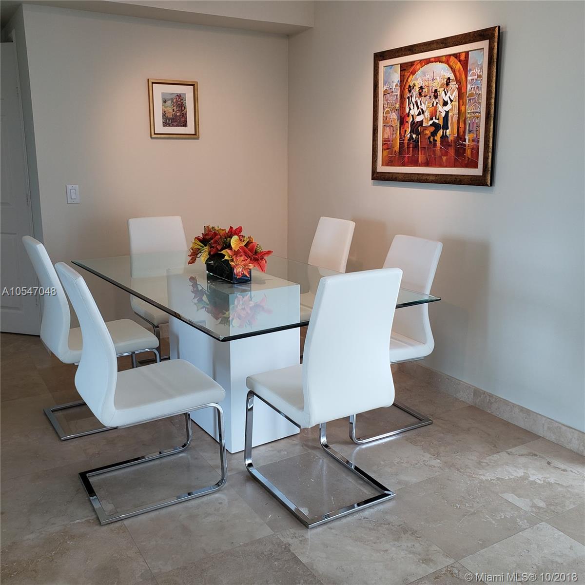 HUGE PRICE REDUCTION!! Amazing, furnished and finished 3 bedroom 2.5 bath, updated unit with Brand New Kitchen, marble and hardwood floors. All New Appliances, never been used. Kitchen boasts New White Quartz counter tops, all new kitchen cabinets, built in wall oven and microwave. Tons of storage. New Dining room table and chairs. Huge walk in closets, New tank-less hot water heater and New AC system. Electric blinds in the living room. This unit has a large balcony facing South with beautiful water views from the South and Golf Course views from the North. Semi private elevators with only two units on this floor. Very quiet and private. Turn key unit on a very high floor, all is new.