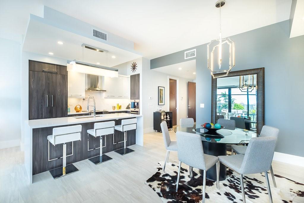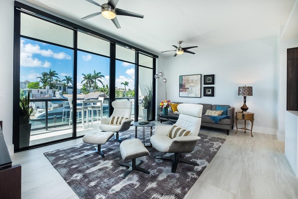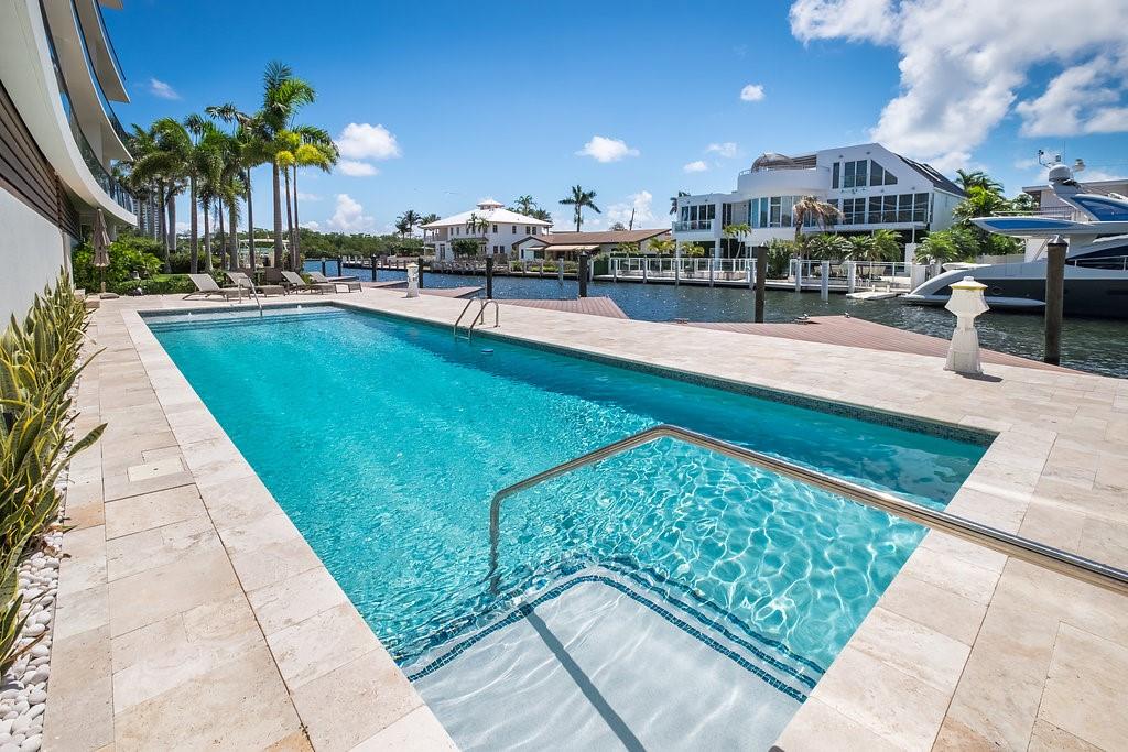 PRICE TO SELL! WATER VIEWS FRONT AND REAR OF INTRACOASTAL AND BIRCH PARK. VERY FEW UNITS HAVE BEEN RESOLD IN THIS BUILDING BUILT IN 2016. AMAZING LOCATION CLOSE TO BEACH AND SHOPPING AT GALLERIA MALL. BEDROOM 3.5 BATH THROUGH UNITS WITH 500 SQFT OF TERRACES ON FRONT AND REAR. ELECTRIC BUILT IN BBQ. REMOTE CONTROLLED SHADES. CUSTOM LIGHTING AND WALL PAPER. DESIGNER PAINT COLORS . BUILT IN CLOSETS AND COMPUTER STATION. LARGE PANTRY AND BOSCH APPLIANCES WITH ESPRESSO MACHINE, ELECTROLUX FULL SIZE WASHER AND DRYER IN LAUNDRY ROOM WITH SINK. SEMI PRIVATE ELEVATOR WITH SECURED TWO DEEDED COVERED PARKING SPACES. CLOSE TO PARK, TENNIS COURTS ,MALL AND BEACH. LOW HOA DUES BUILDING HAS RESERVES AND ALLOWS RENTING, PET FRIENDLY, PRIVATE STORAGE RM IN UNIT. DOCKAGE AVAILABLE
