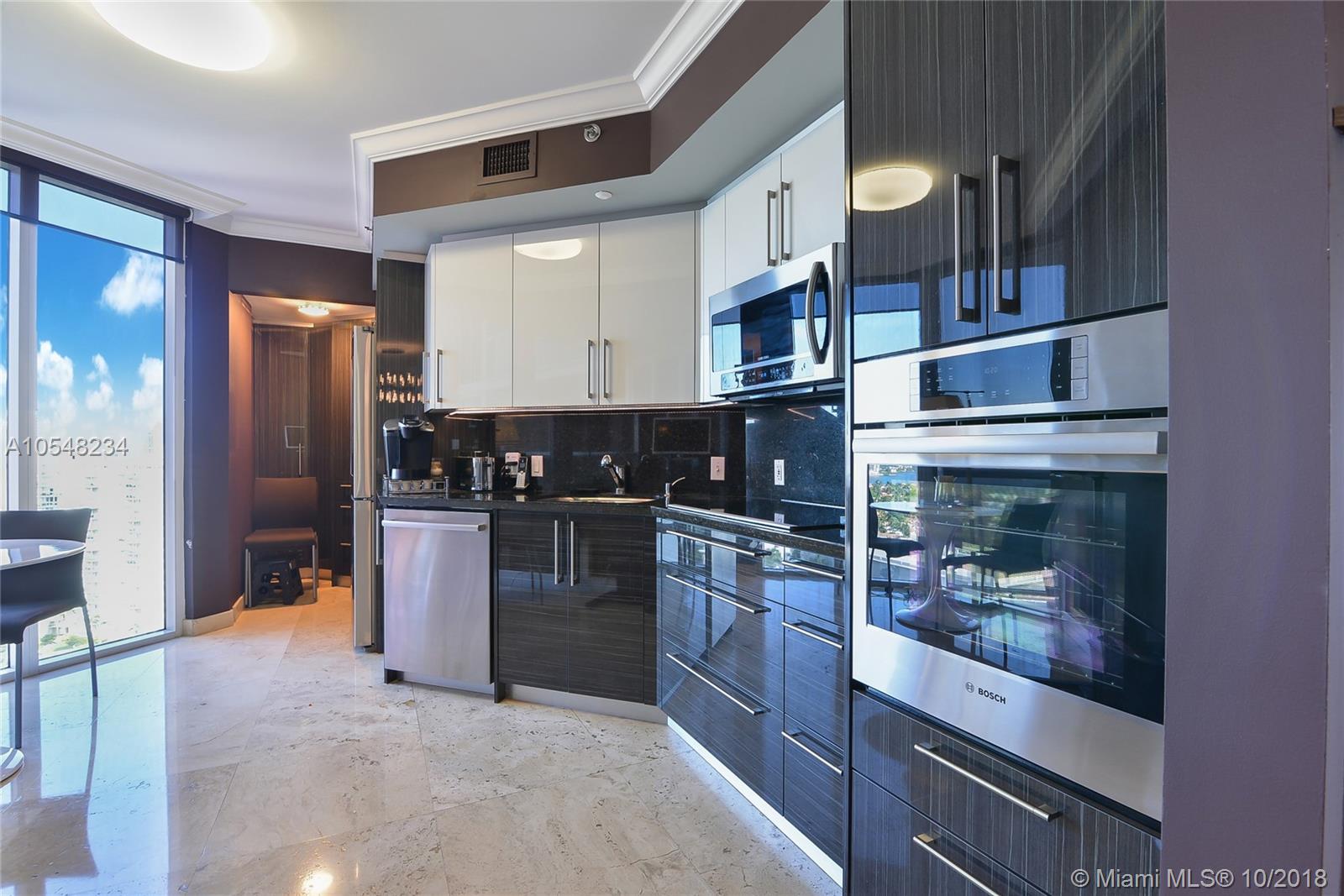 Panoramic Direct Ocean and Bay views ! Totally renovated flow through 2 bedroom plus a den/ 2.5 Bath apartment! Top of the line kitchen cabinets & appliances: Bosch oven & dishwasher. Samsung wifi radio refrigerator. Lots of built in storage & closets, 160 bottle wine cooler with wall unit, designer front door, top technology washer & dryer, marble & porcelain floors throughout. Sunrise & Sunset terraces!
