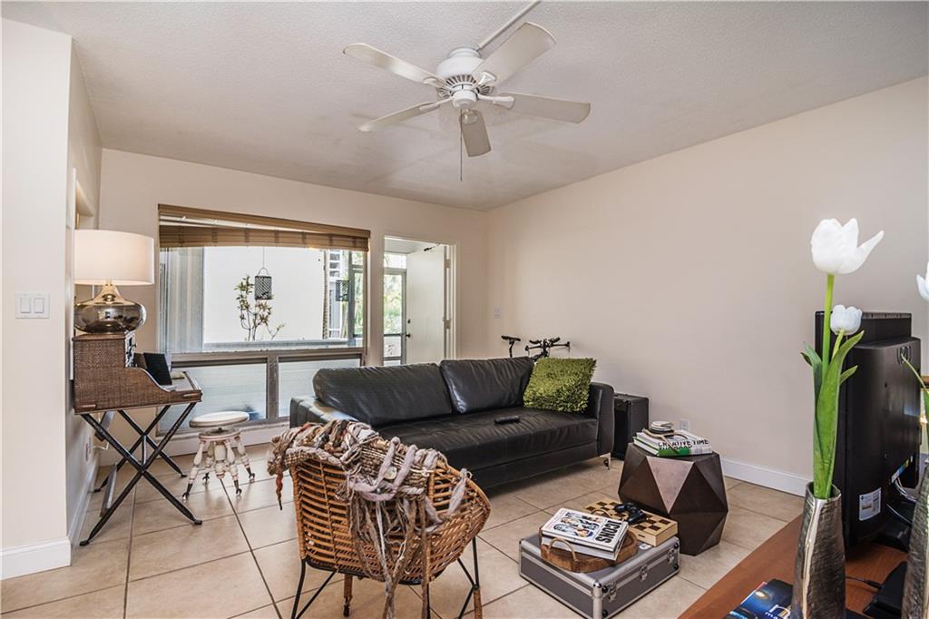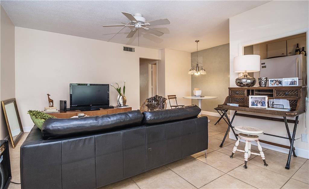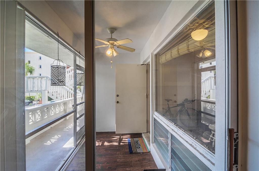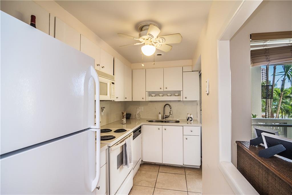 Beautifully 2nd floor apartment just steps to beach! Located on A1A. Amazing garden, pool and canal view with intercoastal access and community boat dock. Ceramic tile floor, very clean and spacious. Walk in closet in bedroom and hall closet with plenty of storage. Unit has hurricane impact window and accordion storm shutter system for patio. Secure complex including laundry facilities, elevator, reserved parking spot and ample guest parking. Water, trash & land lease are included in the Association fee.