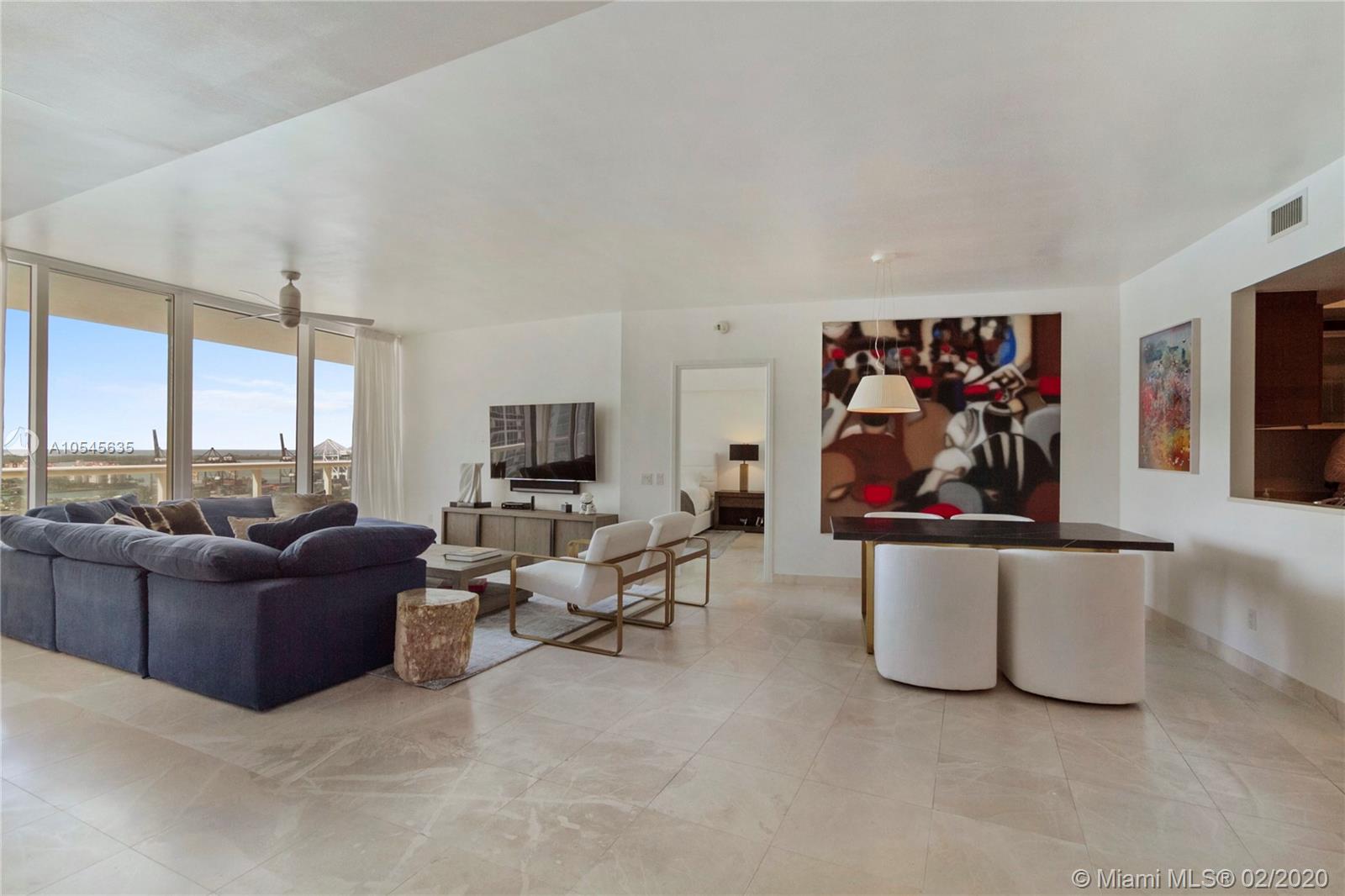 Amazing views of Biscayne Bay, Fisher Island, Downtown, Marina and Port from this split plan 2 bed/2.5 bath + DEN at the Icon South Beach. The highly desirable floorplan includes a den, which can be utilized as a third bedroom, office, study or family room. Marble floors open kitchen with Miele and Sub Zero appliances, separate laundry. Large Master Suite with oversize tub and marble floors. The huge balcony is accessible from every room. The Icon designed by Philippe Starck features a grand lobby with 1st class amenities. Newly renovated lap pool, upper pool, spa, gym, restaurant, library, security, concierge and valet parking.