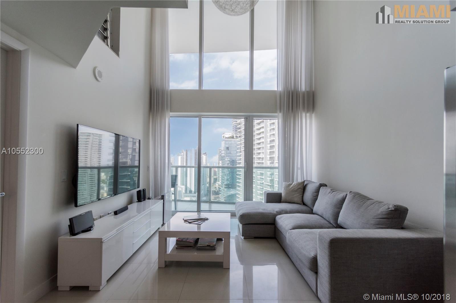 Lovely 2-story loft w/ 2 Bedrooms, 2 Bathrooms, PLUS a Den. Unit features stainless steel appliances and granite countertops, washer/dryer, motorized shades, 18-ft high ceilings w/ floor-to-ceiling glass windows. Best Parking space located on the 2nd Floor!!Amenities include: Amenities include: Infinity pool, Sundeck, Spa, Sauna, Fitness Center, Bussiness center, and 2 hour valet. Walking distance to Brickell City Centre, Mary Brickell Village, Restaurants, Shops, and Public transportation. Unit is currently rented to excellent tenants until August 31st, 2019 for $$2,650/month. A must see!