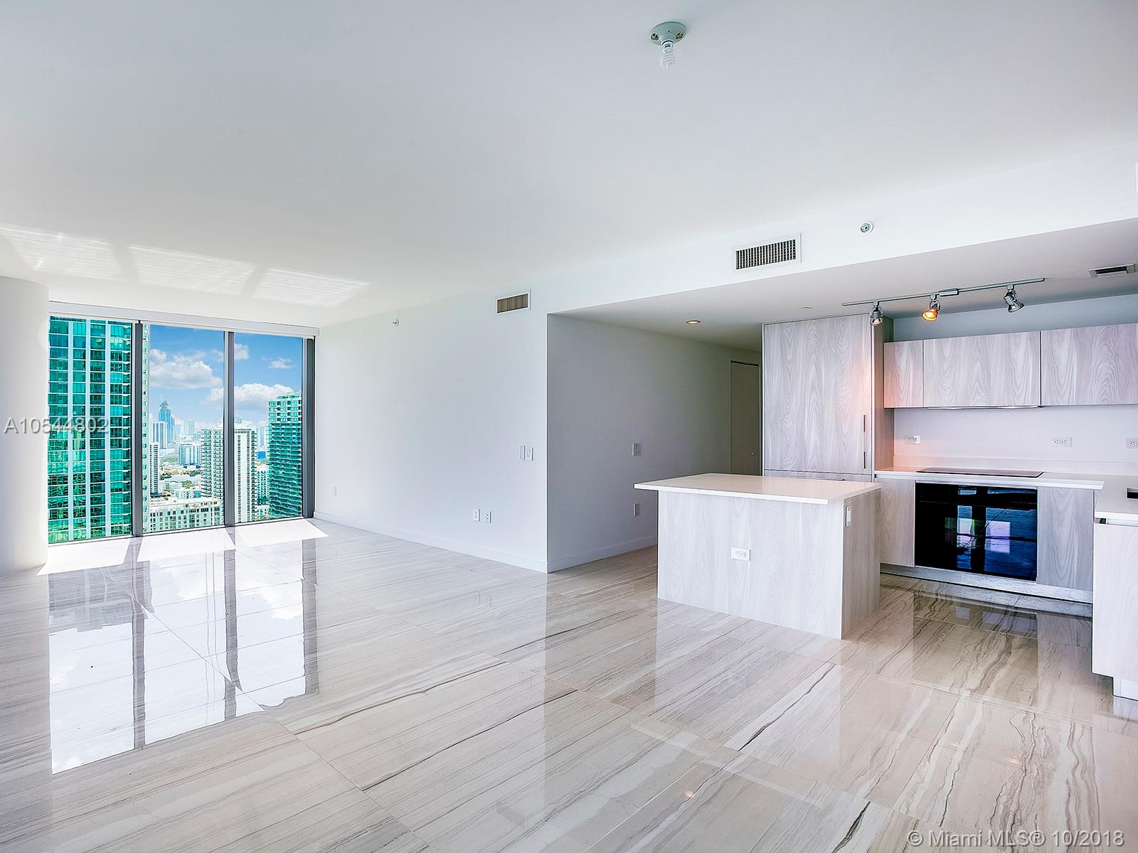 Jaw-dropping unobstructed views from this coveted South East corner, flow-through unit on the 40th floor. Large master suite directly on the water, open kitchen with cook island, top of the line appliances, large balcony, 9ft+ ceilings, bedrooms en-suite. Flooring, electric blinds and closets completed. Designed by Piero Lissoni, One Paraiso is the crown jewel of the Paraiso Enclave. Enjoy the quintessential Miami lifestyle with an abundance of beautiful amenities starting with Amara Restaurant by award winning chef Michael Schwartz. Private beach club w/cabanas, several wonderful pools, tennis courts, lounges, library, wine room, world class spa with massage room, sauna, hydrotherapy, a state of the art gym, theatre and business center. A stunning apartment in an exceptional building!