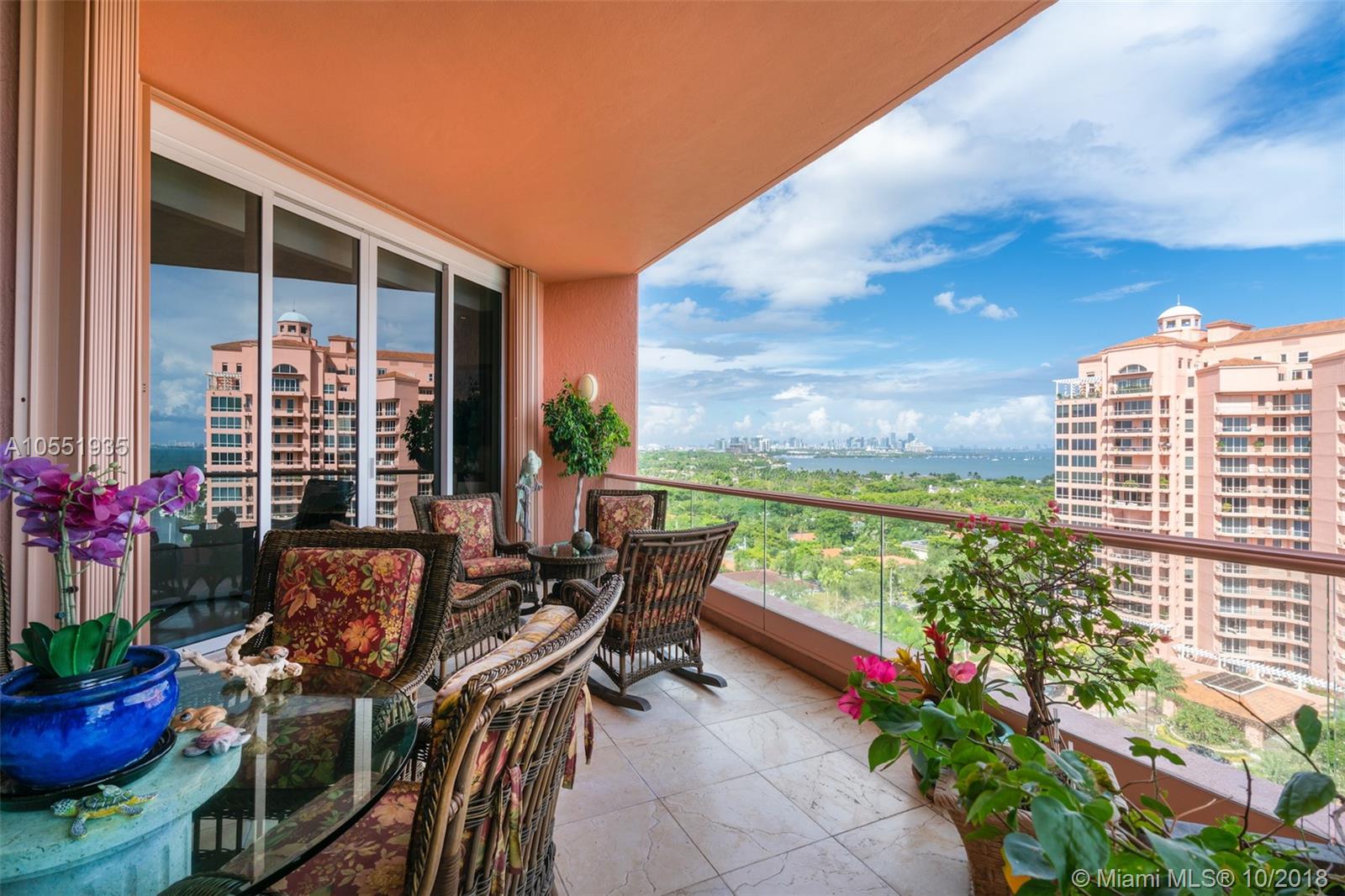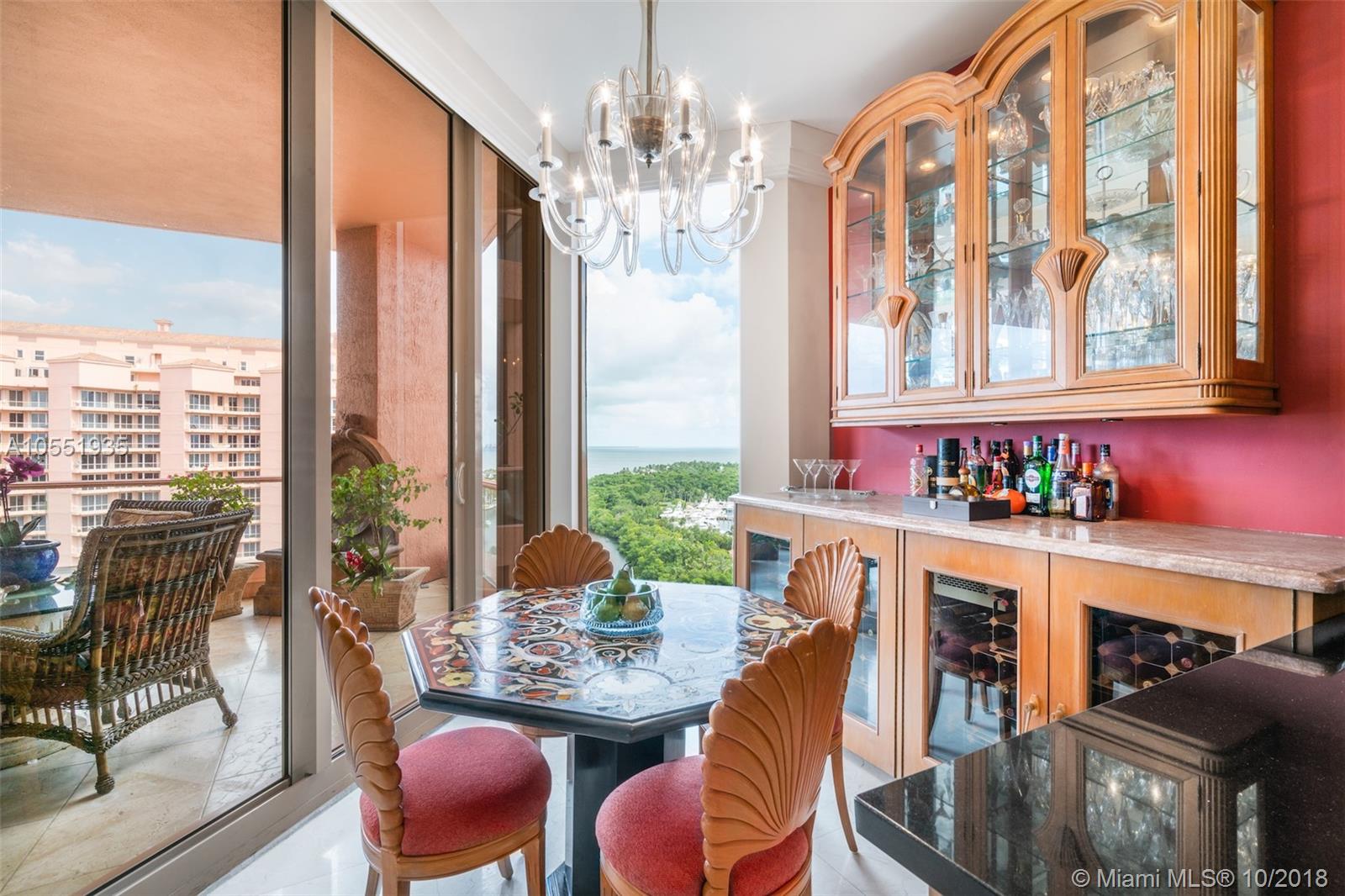Remarkable Penthouse unit on the 15th Floor at The Gables Club. Breathtaking eastward views of Downtown Miami, Cocoplum Marina and Biscayne Bay, one of the best in the building! Spacious open floor plan with Great Room featuring a built-in bar, marble floors, impact picture windows with sliding doors to oversized balcony. Enjoy your morning coffee or mid-day meals with with a view in the kitchen with breakfast nook that maximizes the outstanding views of this one-of-a-kind penthouse. First-Class Building amenities include full-service Restaurant & Bar, Salon, Spa, Putting Green, 2 Pools, Sauna, Hot Tub, 24-hour concierge, Valet, Gated entry to grounds. This unit comes with 2 parking spaces and storage unit. The 3rd bedroom is currently being used as a Den.