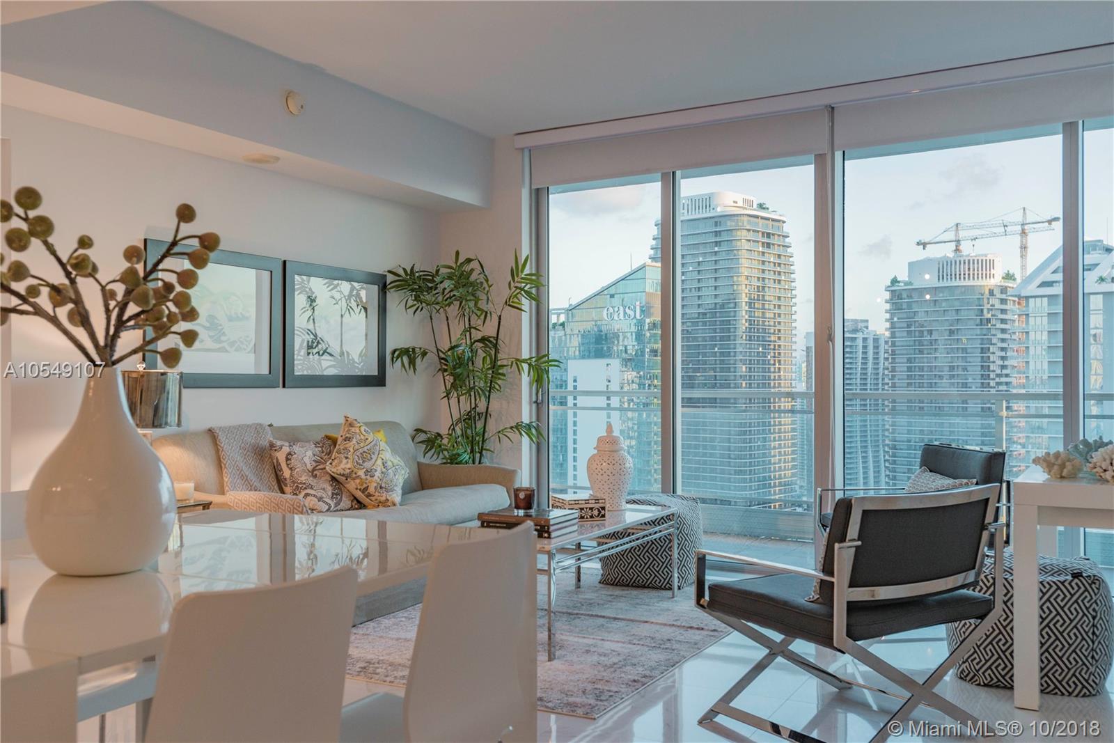 Amazing views overlooking Brickell Skyline, Biscayne Bay and Miami River. Enjoy living within walking distance to exclusive shops, restaurants, movie theaters, bars and Miami's nightlife. The luxurious Mint is also within blocks from Brickell City Centre, Downtown Miami, Mary Brickell Village and Miami Metro Station. Interior features of this 44th floor Unit includes a large balcony with spectacular views from every room, polished white porcelain floors, gorgeous European styled cabinetry with SS appliances, new washer & dryer, custom closets. The Mint offers a multitude of amenities including infinity edge pool, fitness center, spa, community room, business center, concierge within a gated Riverfront Community.