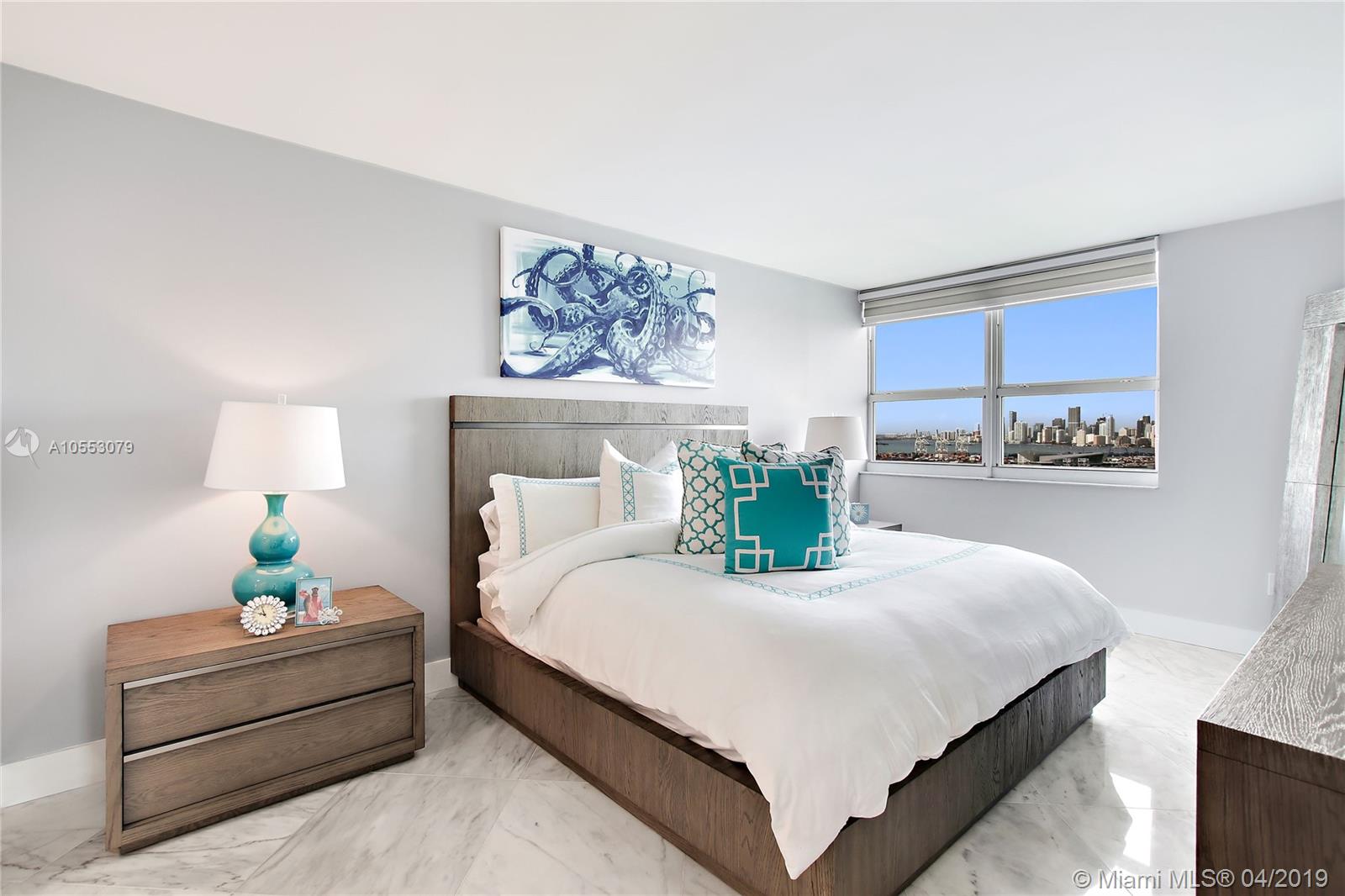 RARE 2BR/2BA “11” line NW CORNER with EXTENDED wrap around terrace. Immaculate! Fully renovated. No expense spared. Re-designed Open kitchen. 24x24 Carrera marble throughout. Granite counters. Master bath with His & Hers vanities and under-lit Onyx countertops. Glass showers. All new Frigidaire Professional SS appliances. Custom lighting. Custom window shades. EXTENDED wrap around terrace offering floor to ceiling glass. Sweeping views of Direct Bay, Ocean and South Beach. The Floridian offers 5-star amenities: 2 bay front pools, poolside food & beverage, tennis court, on-site gourmet market, gym, spa, 24-hour concierge etc... Coming soon-New condo project being developed across the street. Floridian values are primed to strengthen. Do not miss out!