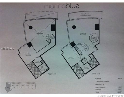 MarinaBlue. Amazing and rare 2bed/2.5 bath loft. Sweeping 20' ceilings, spiral staircase, porcelain tile, stainless steel appliance and granite countertops are just a few features of this beautiful property. Building offers two heated pools, spa/cold plunge pool, fitness center, business center, community/party room, and beach volleyball. Best location in Downtown with easy access to MIA, SoBe, Wynwood, Design District, Brickell and Midtown. Amazing opportunity to own before this area explodes with the completion of World Center. Seller is motivated...Very easy to show.