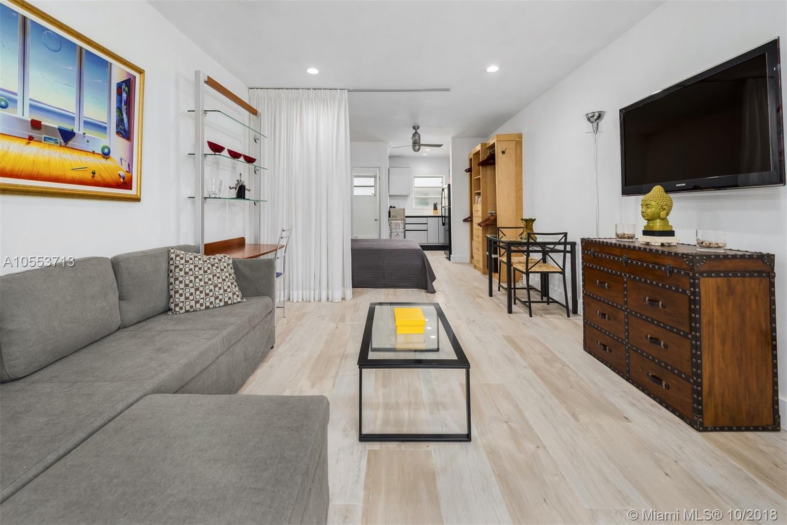 Nestled in South Beach where the Atlantic Ocean meets the world famous Ocean Drive is a beautiful turnkey fully renovated & stylish studio apartment. This unit is located in a charming complex with a sun deck & security entry, boasting new flooring, AC, shears with black out, all new furniture, linens, appliances and more! All in close proximity to restaurants, shops, beach, entertainment & more.