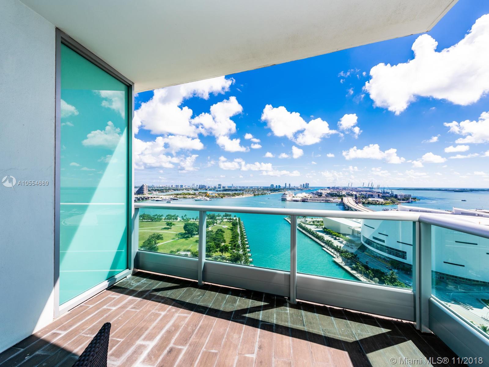 Best priced & most desired floor plan. Direct water corner unit with private elevator & foyer 2 bedroom + Den, 3.5 bath residence with 3 terraces, den has full bath & closet & can be easily converted to a 3rd bedroom. Split floor plan with large master bedroom has two closets and private terrace overlooking Biscayne Bay. Modern open kitchen with Sub Zero and Miele appliances. Spacious living/dining area, high ceilings and huge terraces make this feel like a house. Must see. Call today.