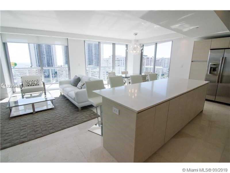 Brand New 3/3 with Panoramic views of the ocean, Intercostal & city skyline. No rental restriction! Private elevator, all high-end stainless-steel appliances. Furnished by private interior designer (furniture is negotiable) $160K in improvements. Armadi closets, Beautiful marble floors 32x32. Rooftop pool for residents only. Gym, valet, concierge services, lounge area. Free transportation to the Beach Club with towels, umbrellas & chair service. Minutes from Aventura Mall and Gulfstream casino area EASY TO SHOW!