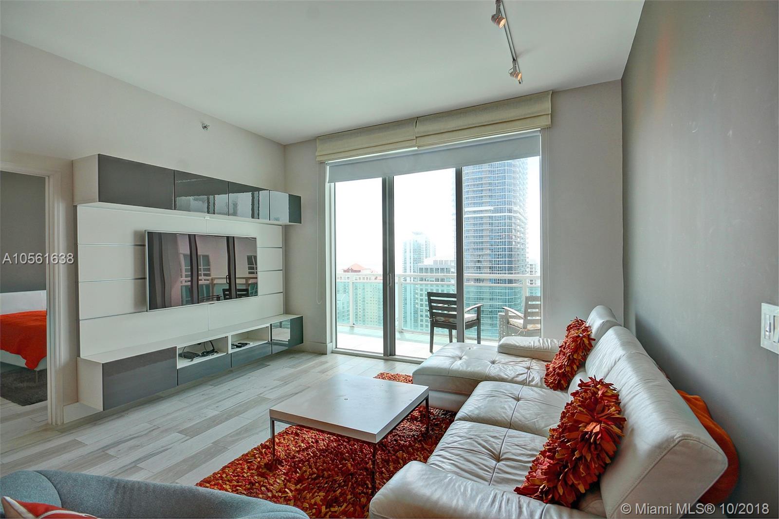 Designer upgraded and fully-furnished Lower Penthouse at Plaza with soaring 11 ft ceilings and views of the Biscayne Bay! High above the Brickell Bay skyline, this unit is turn-key, including upgraded kitchen appliances, porcelain flooring, custom light-fixtures, built-in storage and entertainment system, custom closets, glass shower enclosures, and full length vanity mirrors. Freshly painted. Plaza has lowest maintenance fees per square foot in the Brickell neighborhood for buildings that have a pool. Amenities include two pools, jacuzzi, recently updated gym with sauna, media room, conference room, zen-garden, 24-7 concierge, valet, and a brand-new lobby. One block from Brickell City Centre, Mary Brickell Village. Half block from Metro Mover station. All furnishings included in price!