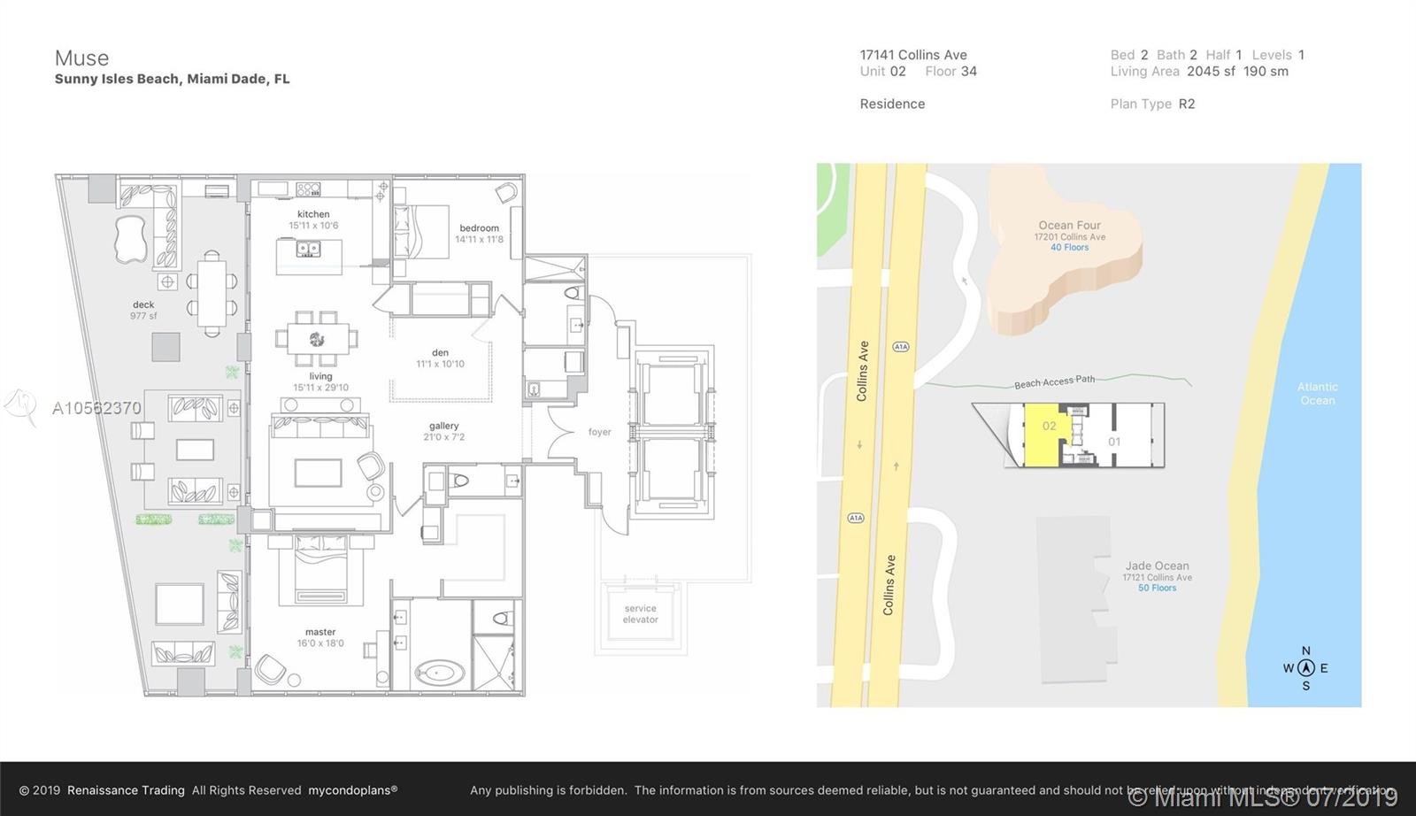 Gorgeous unit on the 34th Floor. Professionally decorated by ADRIANA HOYOS (furniture included in sale). Ultra Exclusive Boutique Building "THE MUSE" Sunny Isles. Very personal w/just 68 high luxury residences. Spacious 2 bedroom 2.5 bathrooms + den which could be easily converted to a 3rd bedroom. 12ft ceilings, Calacata marble flooring throughout entire apartment, State of the art custom kitchen w/ Italian Cabinetry with Sub Zero & Wolf appliances including a temperature controlled storage for 148 wine bottles. This residence also comes w/a Smart Home System which can be controlled from your personal smart phone or ipad. Last but not least the best part of this apartment is the massive outdoor terrace more than 15ft wide w/ complete outdoor kitchen/Bbq & panoramic views of Intracoastal.