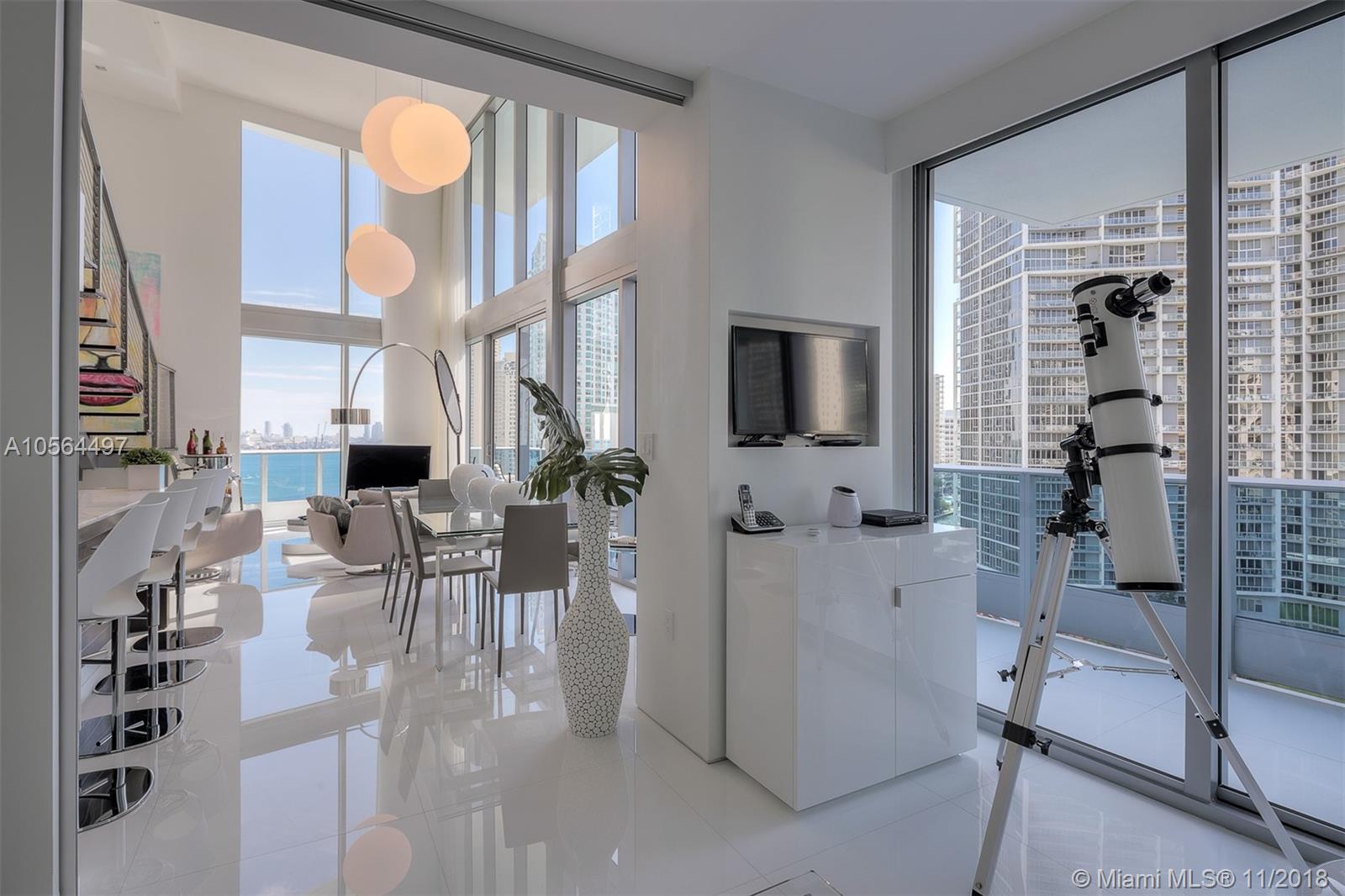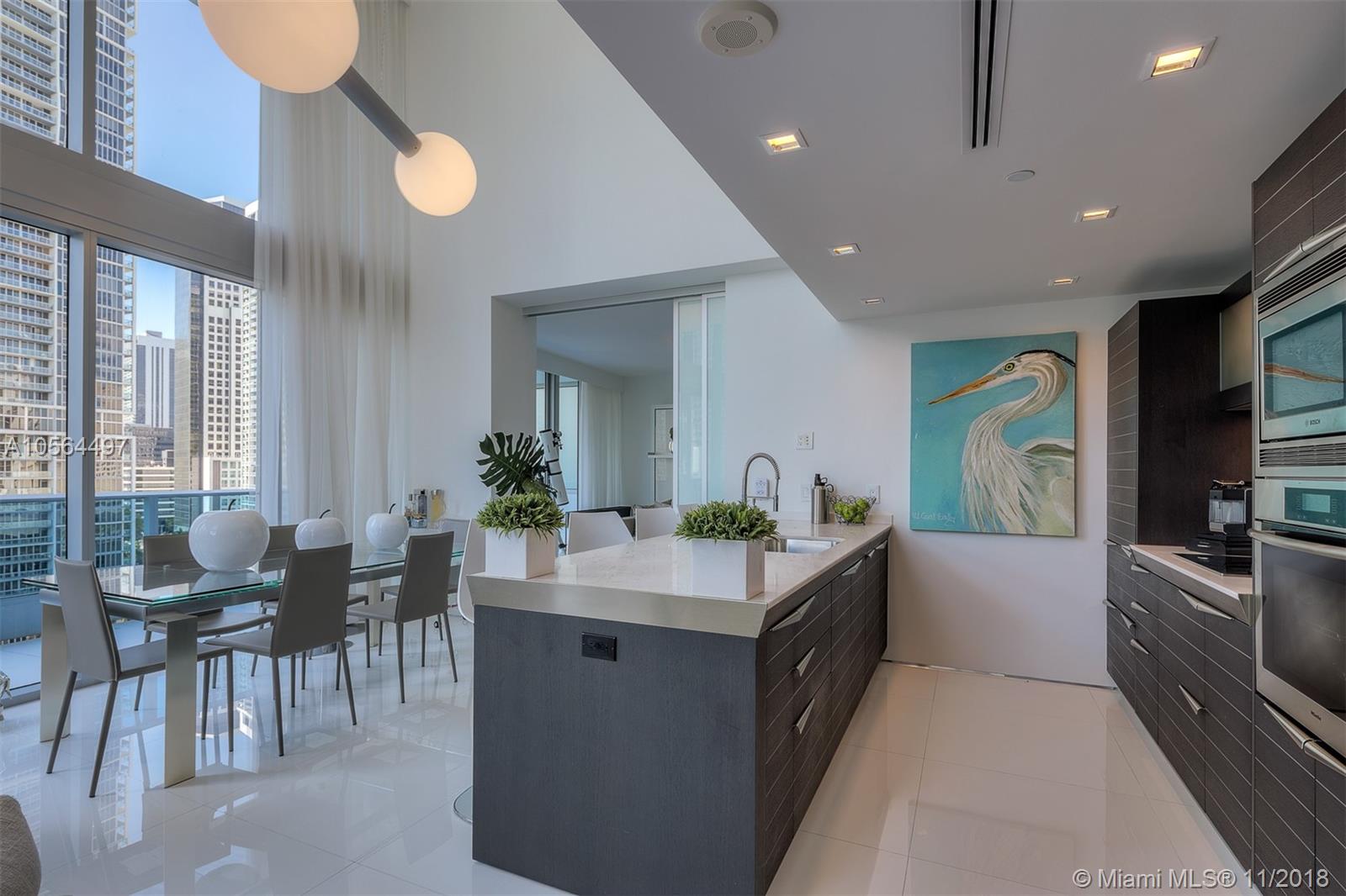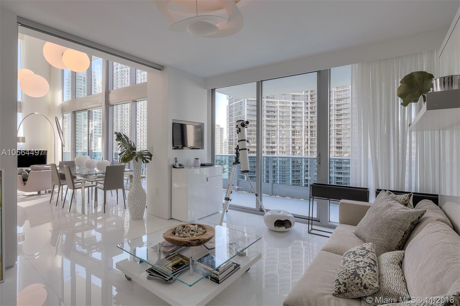 Amazing opportunity to own premium 09 townhouse line at EPIC Residence. Most desirable floor-plan with direct east views from the living room and bedroom. Spacious 2 + den floorplan converted to 3 bedroom with aluminum floating sliding glass panel. Over $200,000 in upgrades and furniture. High-end European lighting and fixtures. Kitchen features Sub Zero, Miele and Italian Snaidero cabinets. Master bathroom features oversized jacuzzi and rain shower. Larger townhouse floorplan at EPIC, adjusted /total area sq/ft from developer floorplan. Offered fully furnished, turn-key. Excellent location across from Silverspot Cinema, 1 block from Whole Foods and 2 blocks to Brickell Avenue.