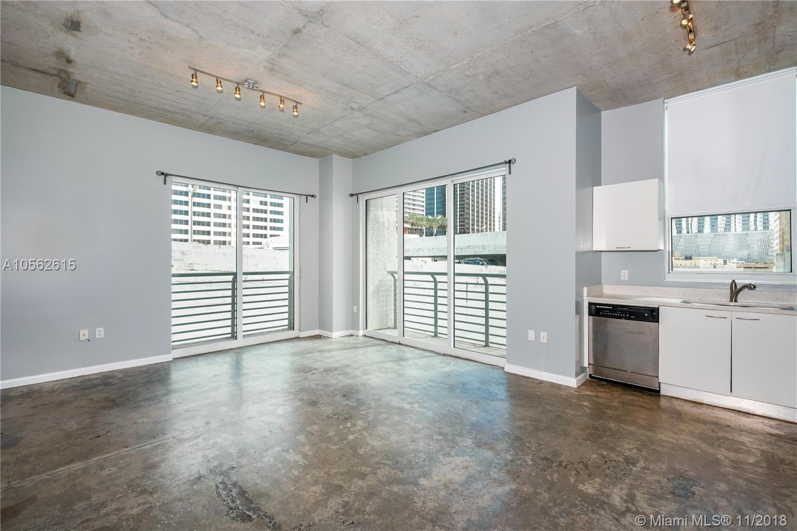 Beautiful loft style condo. Lots of light! Private - only 2 condos on the floor and NO SHARED WALLS! One enclosed bedroom plus den. Den could be used as a 2nd bedroom. Unit features polished concrete floors, white Italian kitchen cabinets, stainless steel appliances, large walk-in closet, and two balconies. Building offers all amenities; rooftop pool and lower level lap pool, spa and fitness center, club room with pool table, outside kitchen area. Right in the heart of Downtown Miami’s urban core! Close to everything! Easy access to Brickell and the Financial District from the metromover right outside the door. Flexible rentals – 30 day min. Washer/dryer in unit. 1 parking space in garage across the street. Maint fee includes cable & internet.
