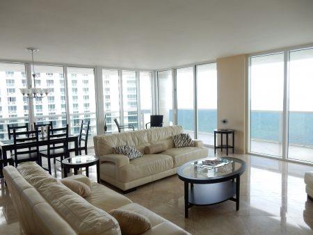 Corner high floor unit with breathtaking direct ocean and city view in modern 5 star ocean front complex. 3 bed, 3.5 bath unit, 2,078 sq. ft. plus 464 sq. ft. wrap around terrace. Marble floors, European kitchen, and floor to ceiling windows. The building features a huge 50,000 sq. ft. full service spa and fitness center with top of the line equipment; poolside bar with food service; full time concierge; and 24 hour valet parking. Building sits on a 9 acre site with 810 ft. of ocean frontage.