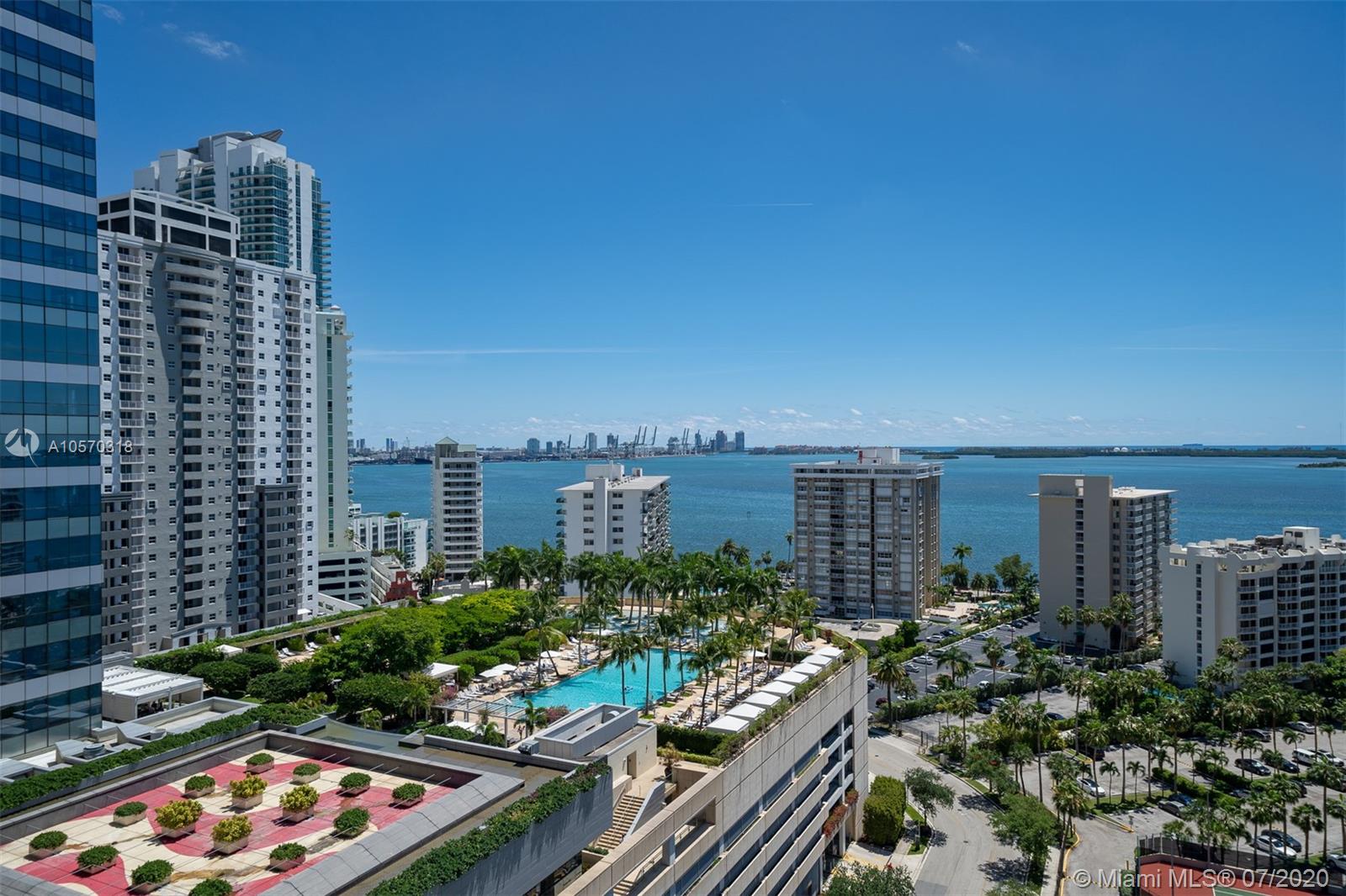Freshly developed 2BR/2.5BA corner unit w/spectacular water and city views. Flow thru marble flooring, custom closet in master bedroom, and expansive terraces with summer kitchen. SMART IHOME system (integrated audio speakers & video / lighting system) and Bluetooth/fob controlled front door (no keys required). Eco-friendly kitchen with Italian glass cabinetry, marble countertops and top-of the line appliances. Infinity-edge pool w/resort-style poolside food & beverage services, gym and spa deck w/ panoramic views of Biscayne Bay and Downtown Miami. 24/7 concierge, valet, pet walker, complementary bikes, nanny service and much more.