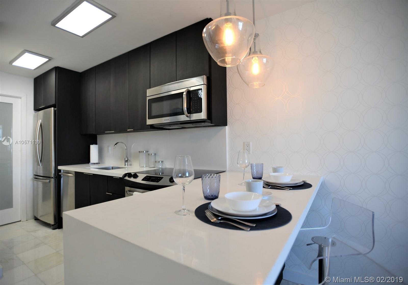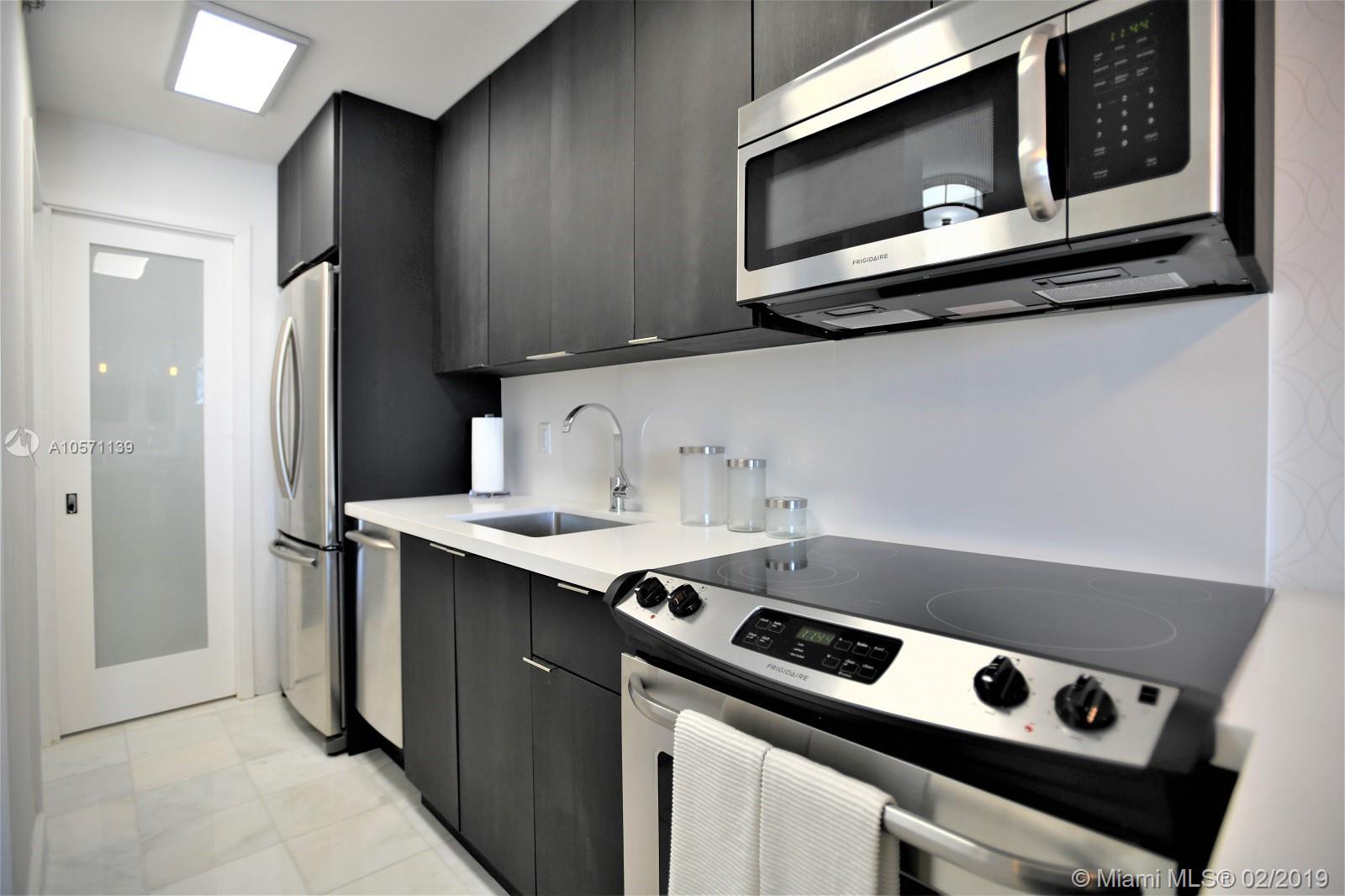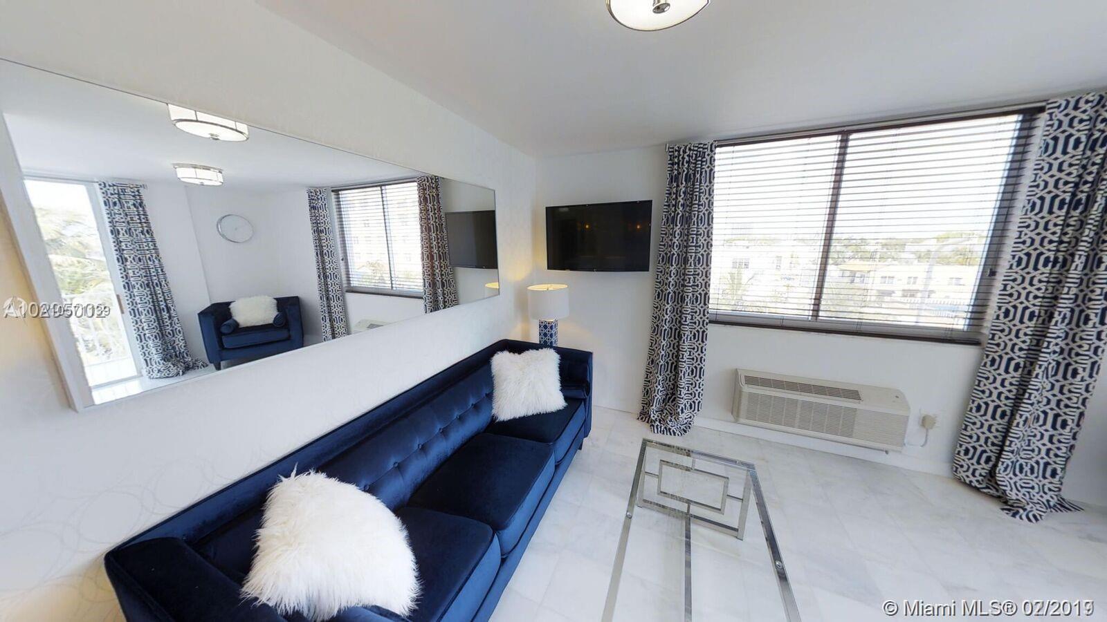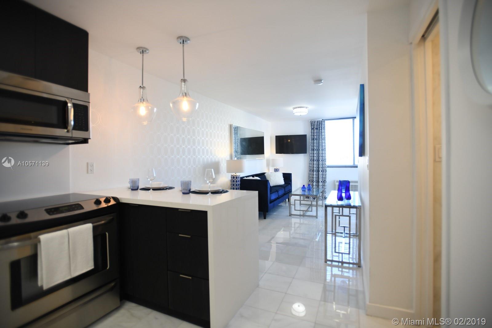Stunning renovation with no expense spared in this fully furnished 1-bedroom condo half a block from the beach! Finishes include stainless steel appliances, quartz countertops, Carrera marble floors throughout, and California walk-in closet. Enjoy the rooftop pool with fabulous views, new gym, new lobby, new high capacity generator, & 1 assigned gated parking space. A short distance to world famous Ocean Drive, Lincoln Road, shopping, and dining. Pets allowed. Private financing available w/substantial deposit.