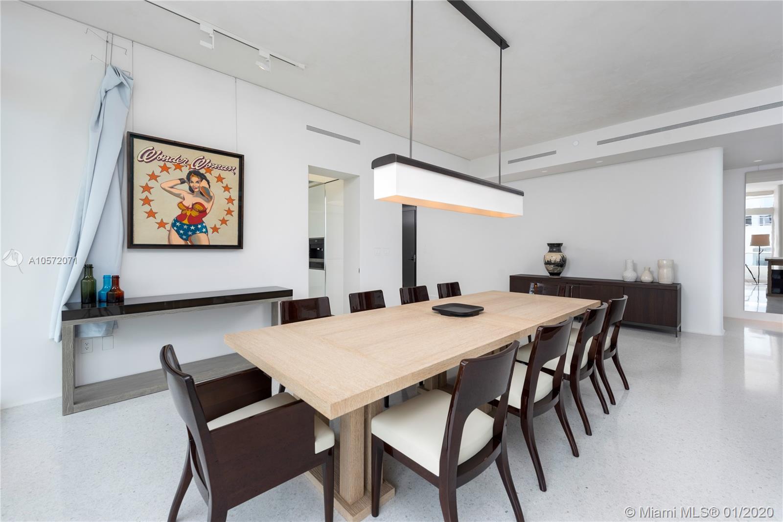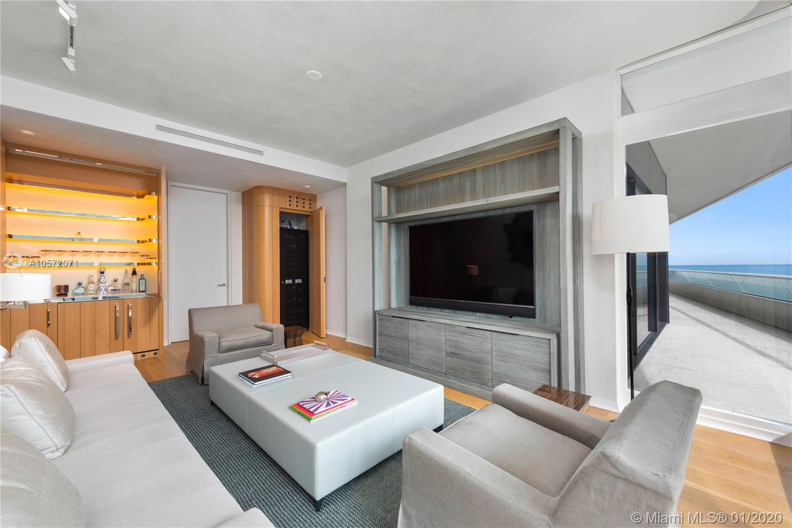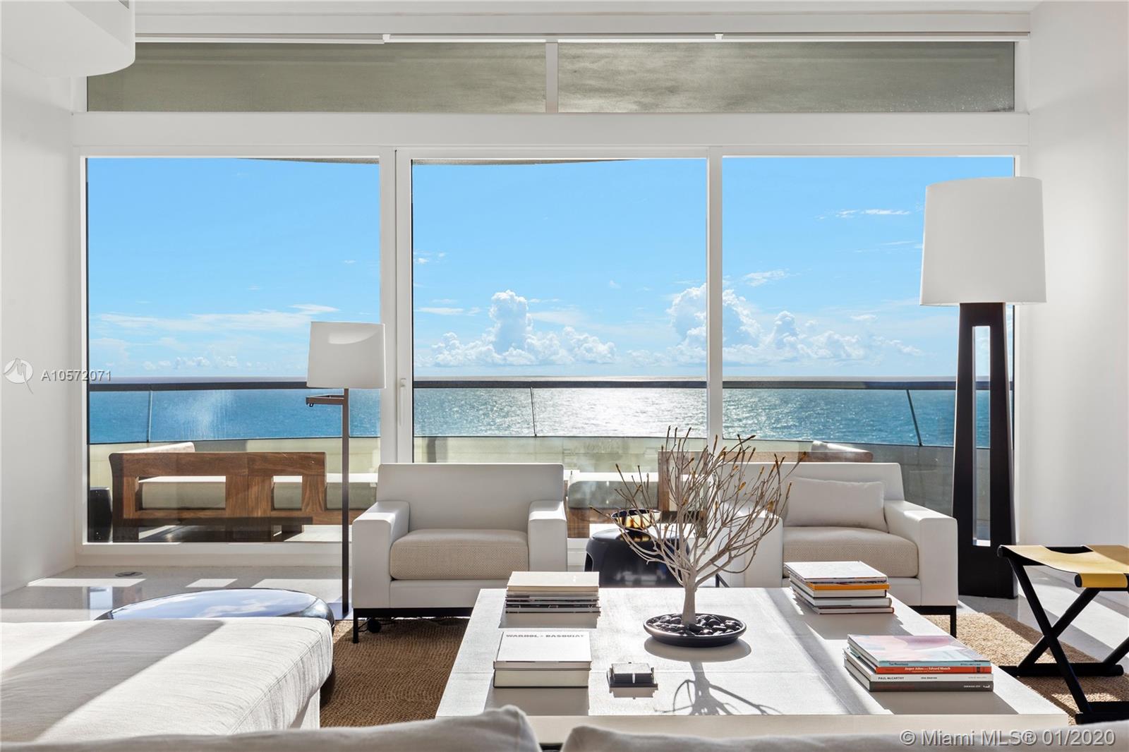 Designed by Foster+Partners, Faena House is the epitome of true indoor/outdoor living, designed to seamlessly connect with its oceanfront setting. Designed and furnished by Christian Liaigre, this magnificent 4 bedroom + office and 5.5 bath turn-key residence, spanning 5,466 sq. ft., offers extensive custom upgrades. Venetian plaster walls and ceiling, a media room with a built-in wet-bar, a kitchen by Molteni with Miele appliances, terrazzo floors throughout, bathrooms by Permasteelisa, and an upgraded Crestron Home Automation System complement the unit. A continuous balcony wraps around the apartment, extending the living space outside. Residents have access to the amenities of the adjacent five-star Faena Hotel. The hotel service and amenities are brought to your personal refuge.