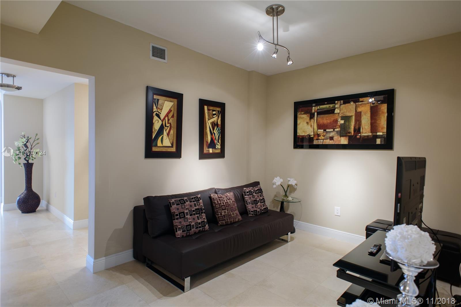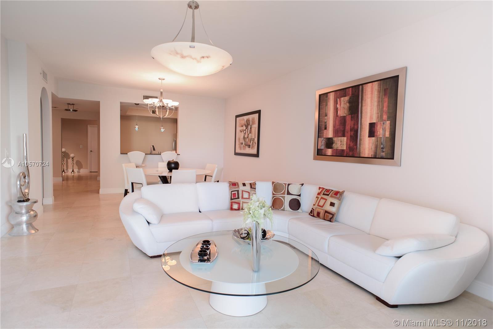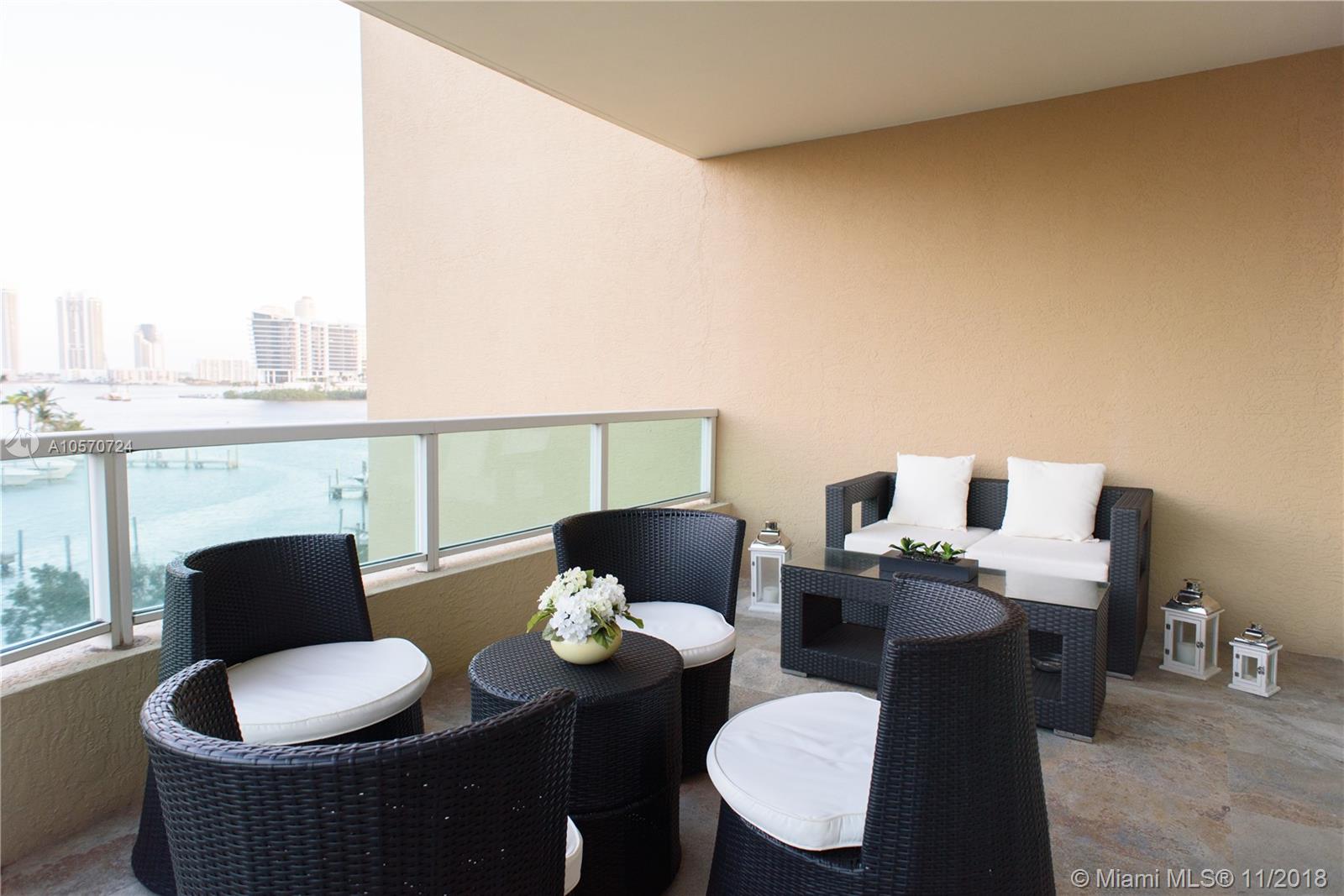 Open, spacious and modern, this 2 bedroom, 3 bath plus den ocean view apartment is a unique find. Designed with clean, contemporary lines and neutral interior finishes, the expansive 1,750 square foot luxury residence offers four parking spaces - a rare feature. Fully renovated, the fifth floor condo also includes a modern kitchen with granite countertops, stainless steel appliances and decorative lighting, a breakfast area, high ceilings, marble floors, crown moldings, laundry room and walk-in closets in all bedrooms. The desirable floor plan further complements the amenities, with a living room, dining room and oversized balcony with gorgeous ocean views. Aventura Marina is an impeccably maintained gated complex with full clubhouse and a 24/7 accommodating front desk staff.