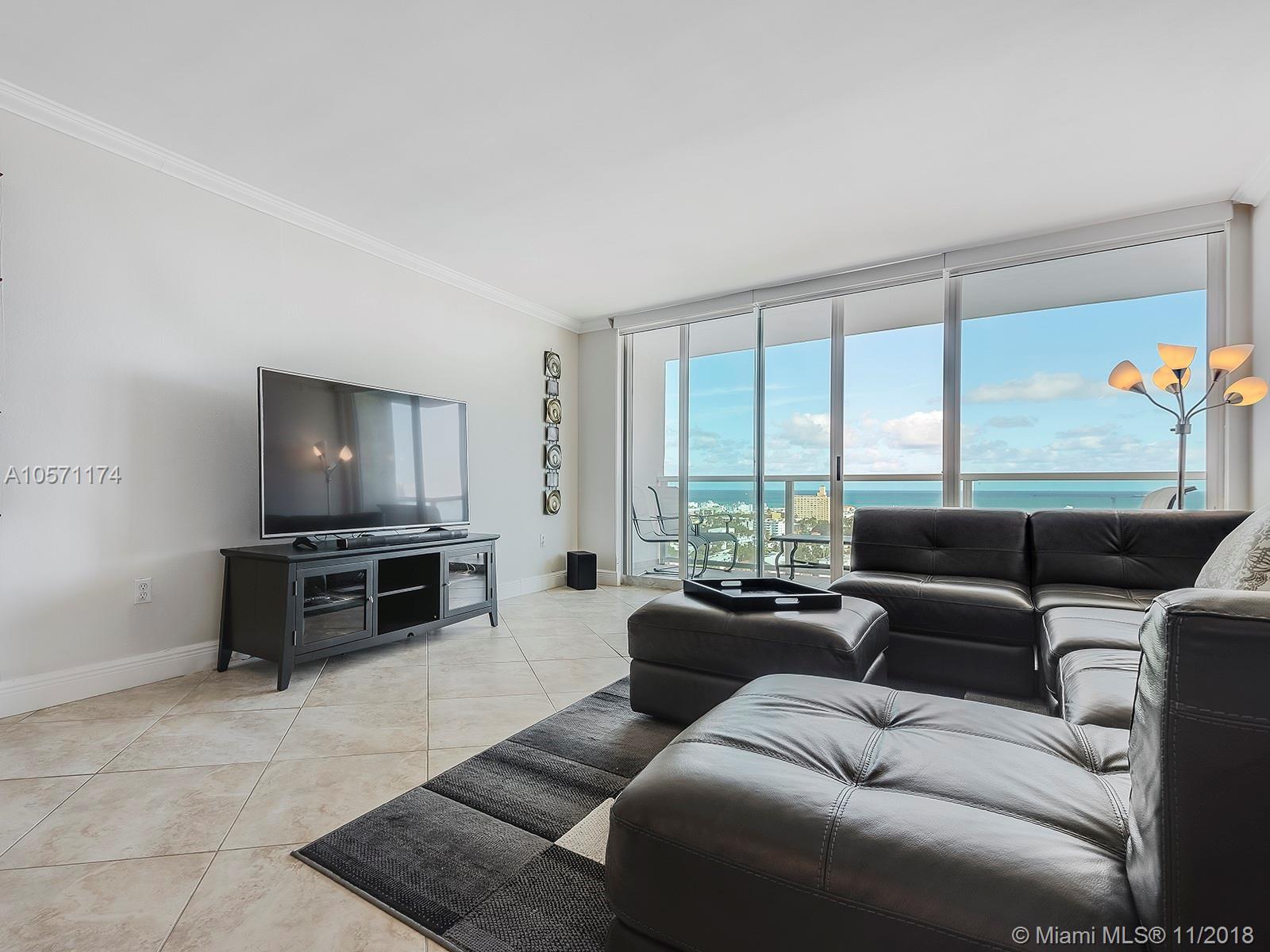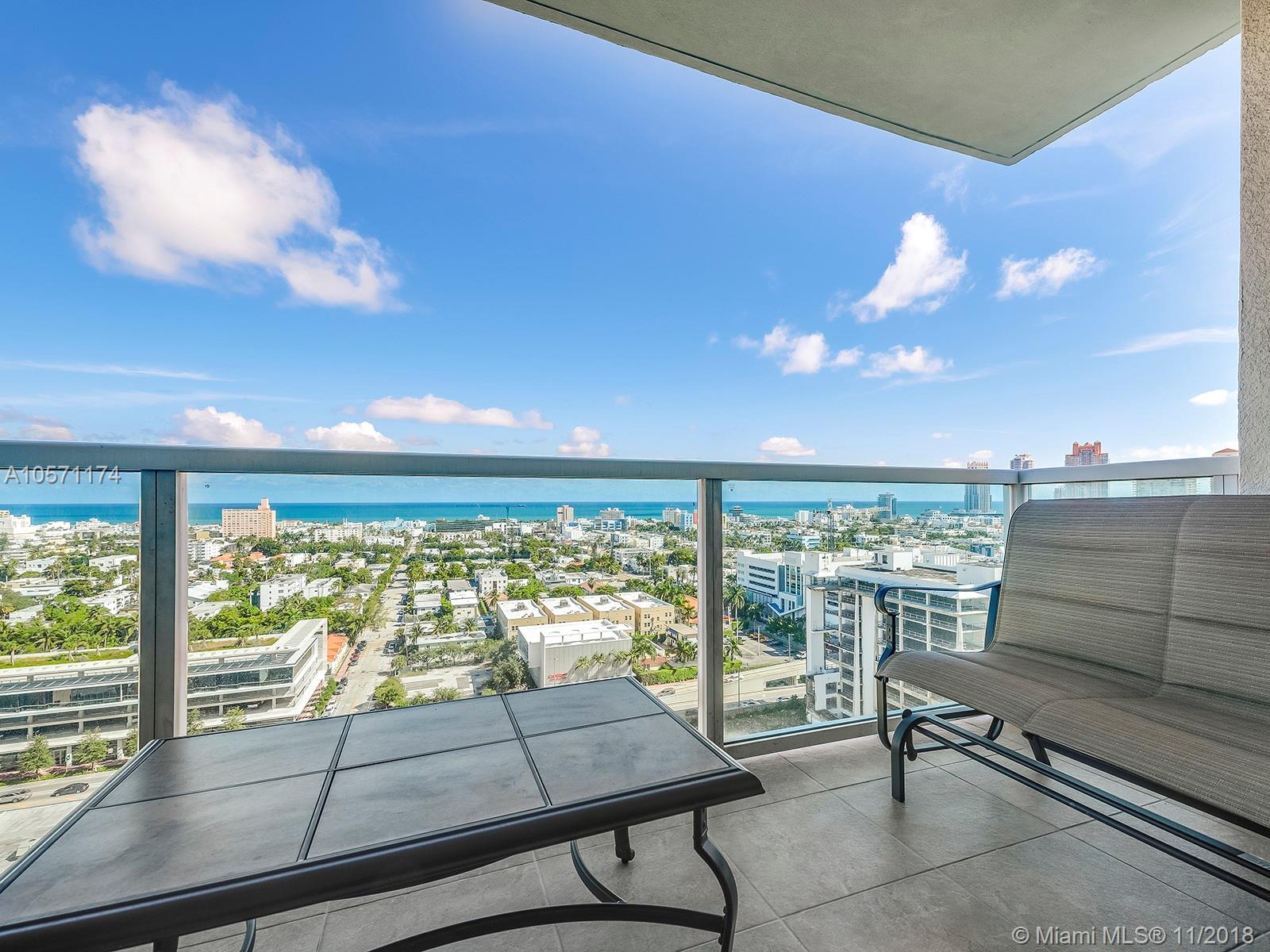 Beautiful high floor and best priced 1 bedroom at the newly renovated Floridian Condo in South Beach. This 1 bedroom, 1 bathroom apartment offers ocean and Miami Beach city views, tile floors throughout, updated kitchen with stainless steel appliances, updated master bathroom and a large balcony perfect for entertaining. The Floridian is located on the desired West Ave in Miami Beach and a couple blocks away from the south of 5th neighborhood. The Floridian was fully renovated with a new lobby, hallways, elevators and offers great amenities like 24 hour valet and front desk service, two pools, a tennis and basketball court, fitness center, on site convenience store, spa and therapy room and much more.