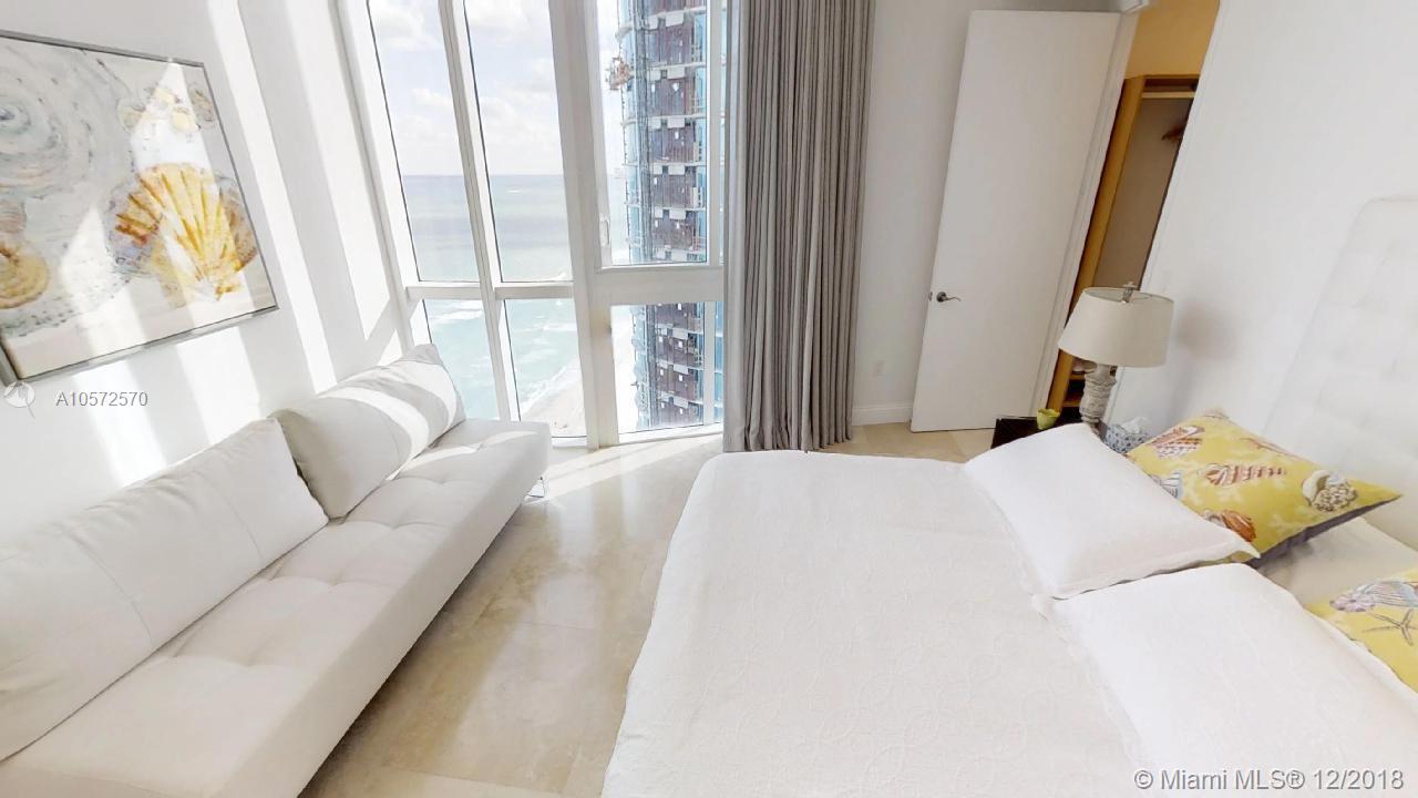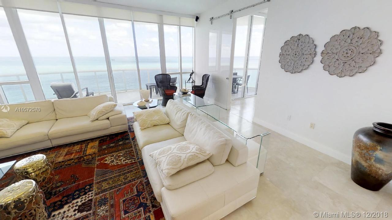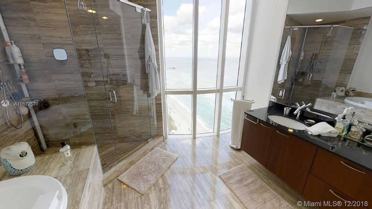 The most spacious direct ocean view residence at Trump Towers is waiting for you to start living Sunny Isles Beach at its best. Glamour meets luxury on this majestic skyvilla. Immense 180 degrees of ocean and beach views. Split floor-plan featuring 3 direct ocean view suites with private full bathrooms. Master-bedroom has direct access to the terrace, sitting area, his/hers walk-in closets and Jacuzzi tub. Finished in travertine stone floors and the highest quality details. Spacious chef grade kitchen with granite tops, cabinet matching SubZero fridge, wine cellar, espresso coffee machine and stainless steel appliances. Laundry/maid quarters. Pets welcome. Full service building with private beach access, pool, gym, concierge, valet parking.