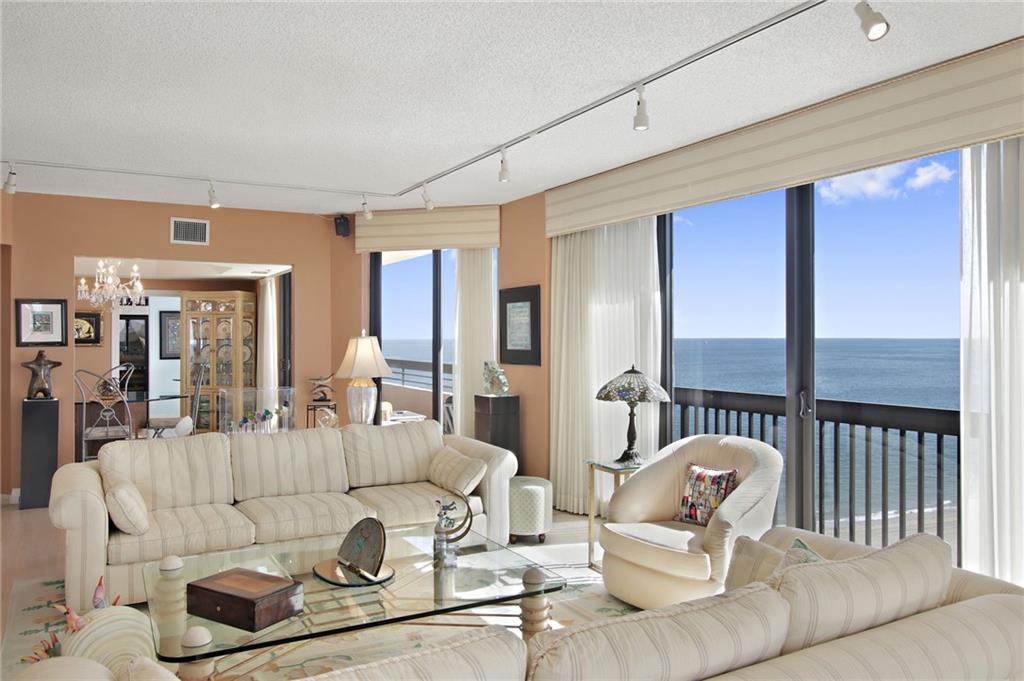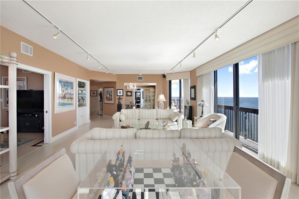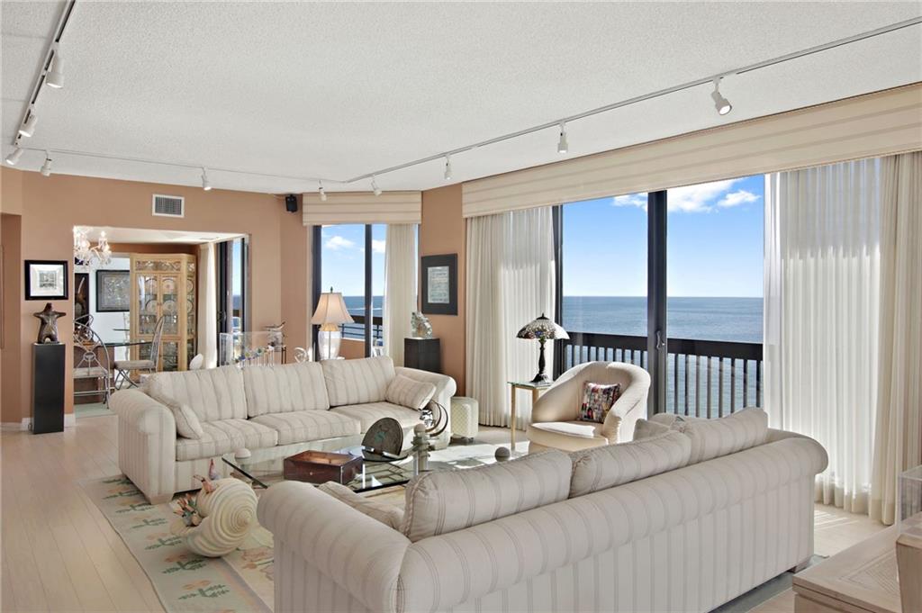 This spacious 3BR/3BA corner penthouse residence is one of only four in this extraordinary 46-unit oceanfront boutique bldg. and features impressive ocean, intracoastal, city, & Lake Santa Barbara views, private poolside cabana complete w/ living space, bathroom & shower, large master suite w/ steam shower, impact glass throughout, walk-in closets, 9ft ceilings, Waterford chandelier, eat-in kitchen, Eurocave wine cooler, dining room, wrap balcony, garage parking, 24 hour security, newer roof, newer A/C, foyer, laundry room, newer elevators, reserves, well-managed board, resident mgr., the bldg. is sprinkled & 2 pets under 25 pounds are welcome. Enjoy South Florida's trendiest restaurants and beautiful beaches. View virtual tour link.