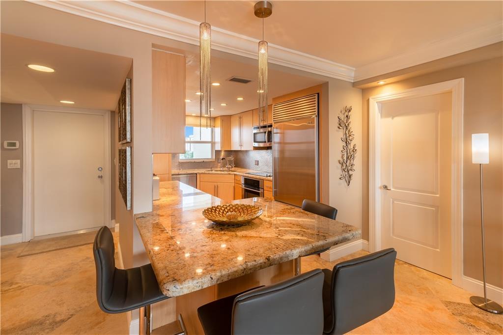 DIRECTLY ON THE INTRACOASTAL! RARELY AVAILABLE 3 BEDROOMS & 3 BATHS WITH SOME OF THE BEST VIEWS IN THE ENTIRE BUILDING! COMPLETELY UPDATED THROUGHOUT, MARBLE FLOORING, GOURMET KITCHEN WITH SUB ZERO REF, GRANITE COUNTER TOPS, PANTRY, MARBLE BATHS, TOTO TOILETS, BODY SPRAYS IN THE MASTER SHOWER, CUSTOM LIGHTING, BUILT IN CLOSETS, BUILT-INS IN THE LIVING ROOM & DINING ROOM, WET BAR WITH WINE COOLER & ICE MAKER, CUSTOM STONE WALL FEATURE IN LIVING AREA, CEILING FANS, FIREPLACE, STEREO SOUND EQUIPMENT, HUNTER DOUGLAS WINDOW TREATMENTS THROUGHOUT, FRONT LOADING WASHER DRYER IN THE UNIT. PRIME COVERED PARKING SPACE & STORAGE. AMENITIES INCLUDE CLUBROOM, BILLIARDS, FITNESS CENTER, HEATED POOL, SAUNAS, BBQ GRILL, ROOF TOP SUN DECK AND MUCH MORE! PRIME INTRACOASTAL FRONT,LOCATION WALK TO THE BEACH!
