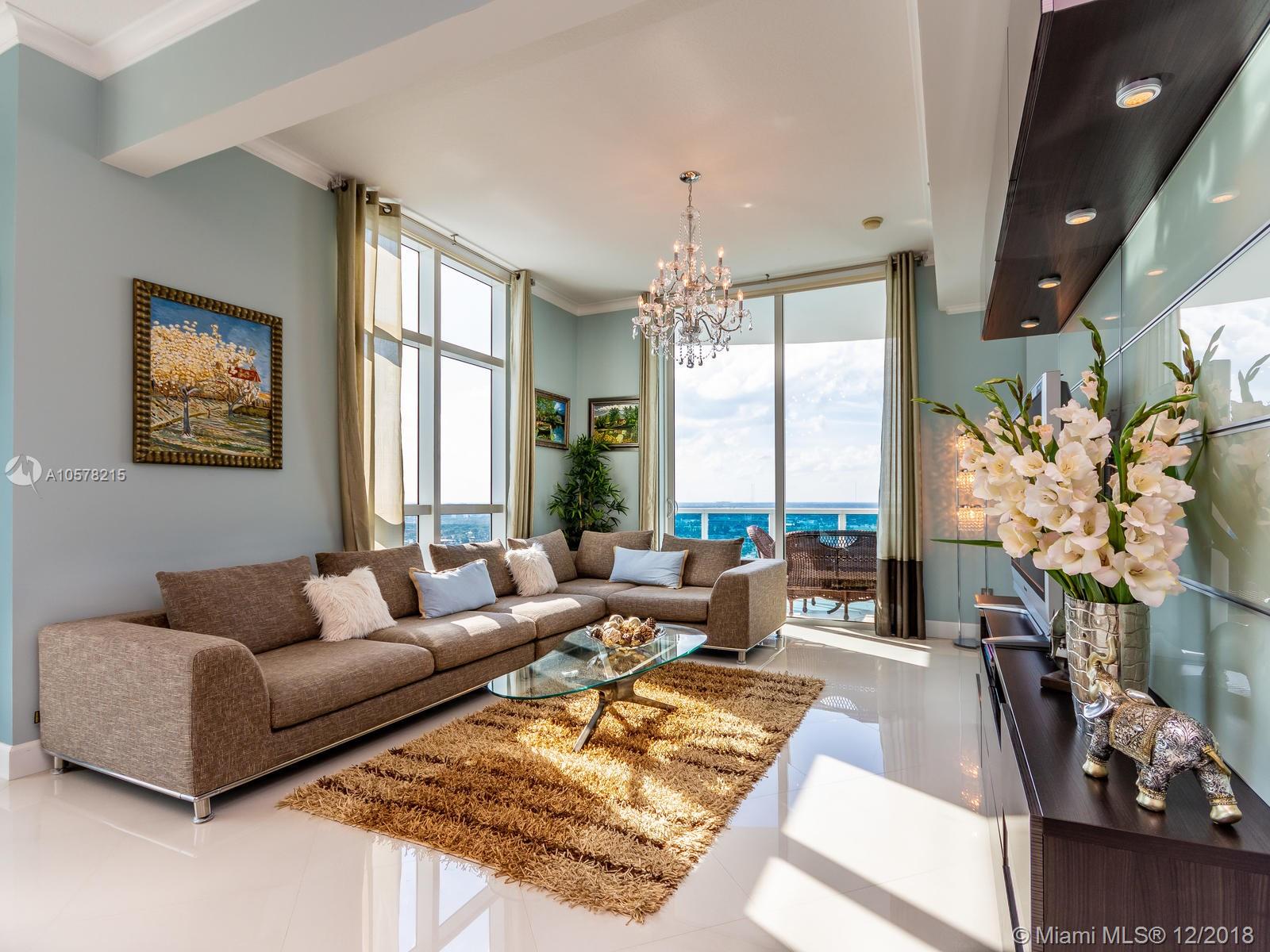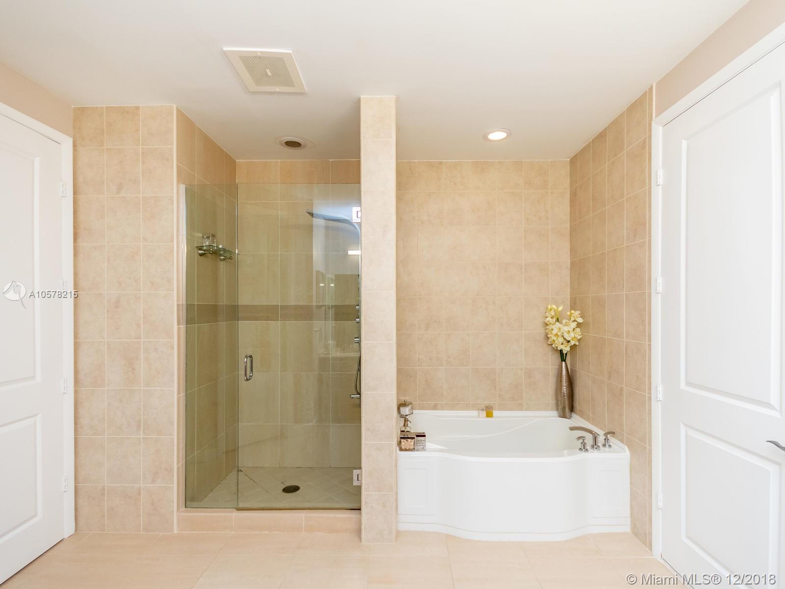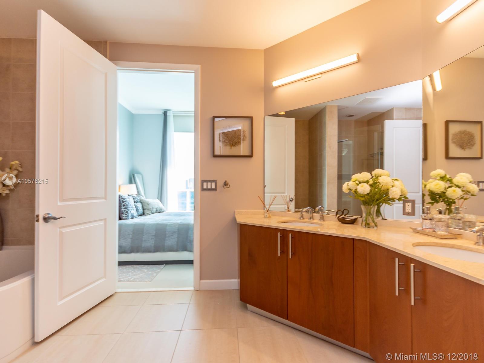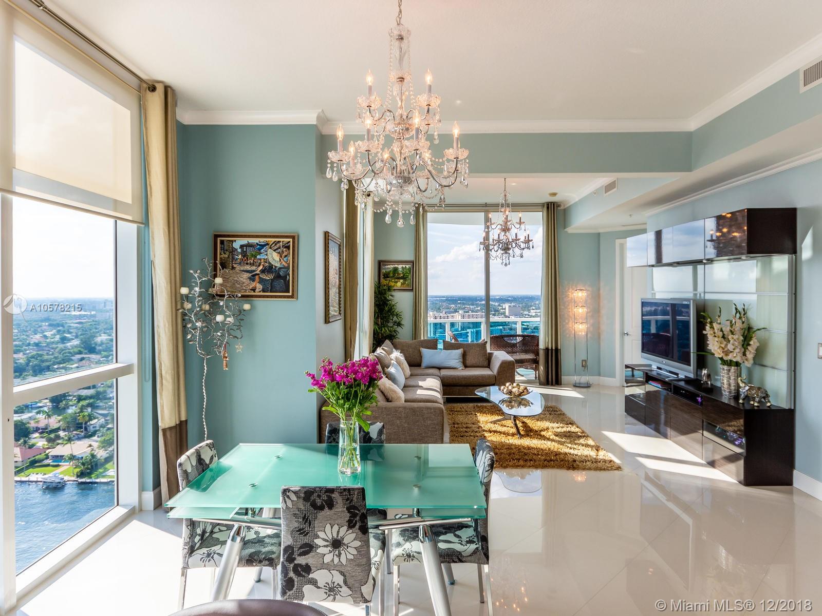 Beautiful 26th fl unit w/10.5 ft ceilings. This condo has three bedrooms including 2 master suites with a custom sauna. The 2 large balconies and floor to ceiling, high impact windows give fantastic views of the Intracoastal & the Beach. This updated unit has wood cabinetry & stainless steel appliances in the roomy kitchen. Unit has 2 A/C units and a reverse osmosis water filtration system. The building has 24 hour doorman/security. The outdoor pool area is surrounded by 36 cabanas. Building features include a community boat dock, fitness center, business center, individual storage units for each residence and 2 reserved parking spaces in the enclosed garage.