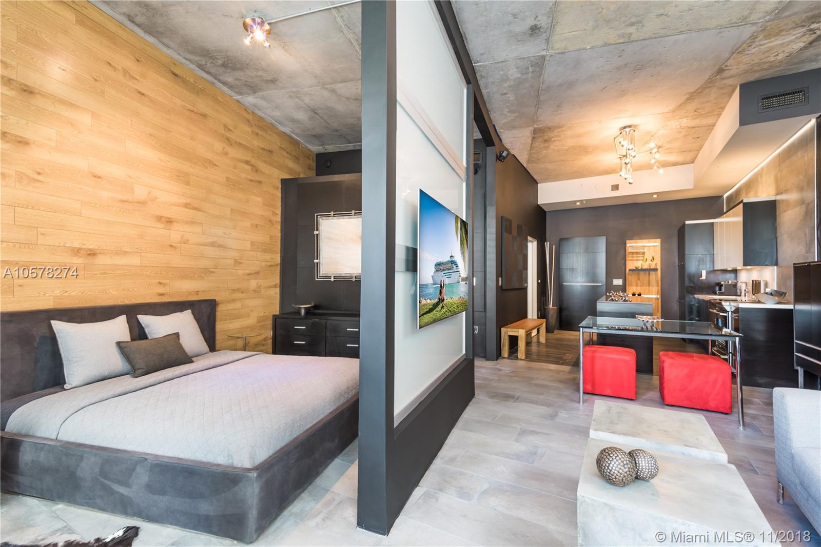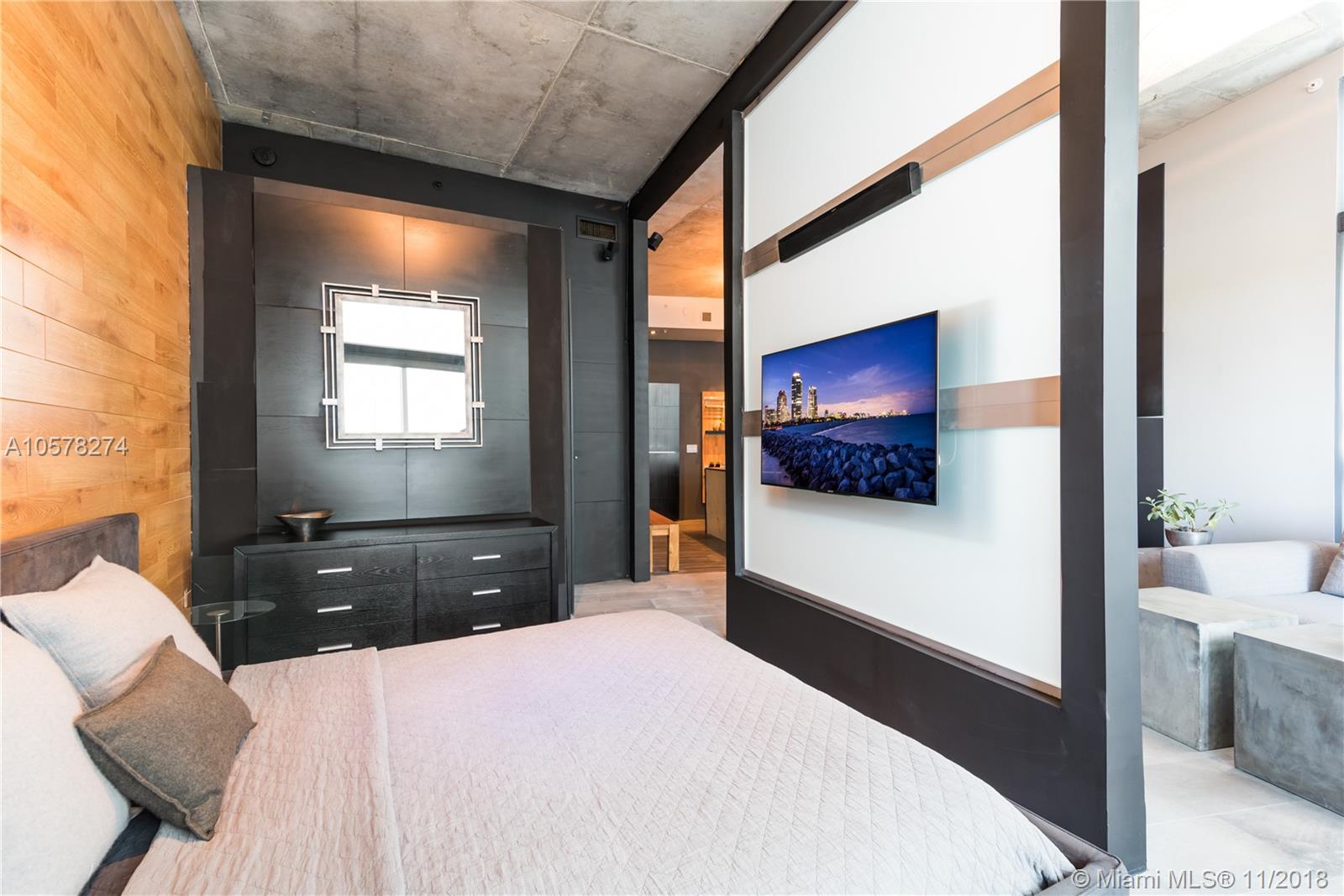 Recently updated corner loft at The Meridian Condo. Poggenpohl kitchen with Corian counter-tops, and newly built center island with build-in wine cooler. The large bath includes a rain/steam shower, high-end fixtures and full-size vented washer/dryer. This high-tech unit also comes with Adorn smart home Wifi dimmers, Nest thermostat, 65” and 55” smart TVs with Bose surround sound and Apple TV, Bose lifestyle sound system with built-in speakers and subs. The owner installed extra sound proofing with neighboring walls. Lastly, the unit comes with Flos and Diesel Foscarini light fixtures, 1 garage parking spot, 24 hour doorman and security, balcony, pool, and gym. Offered fully furnished.