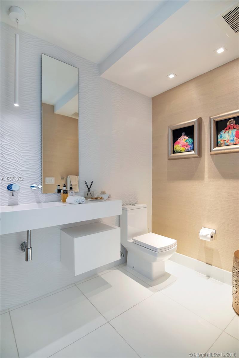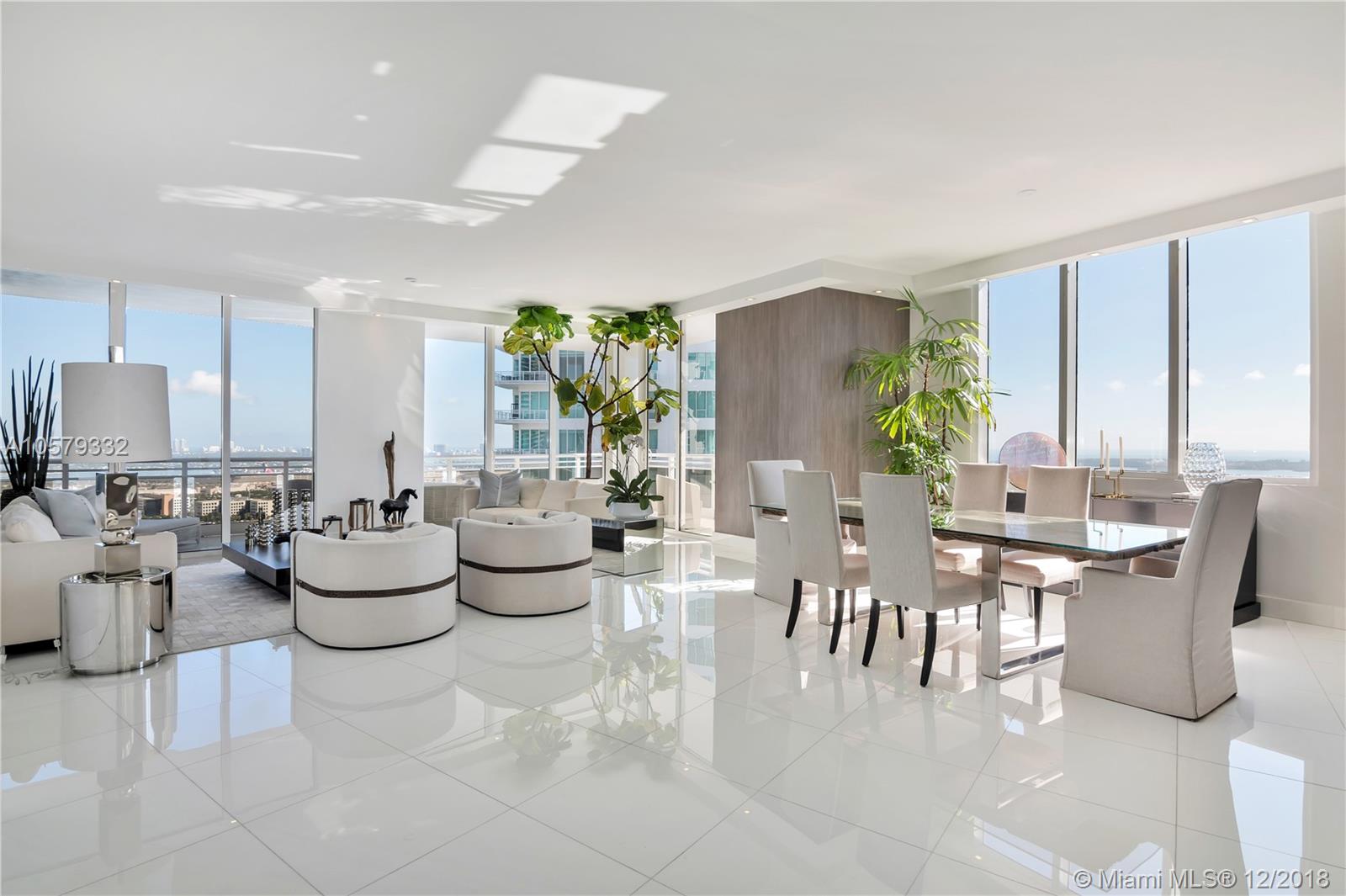 Stunning 4BR/4.5BA+DEN unit completely remodeled with large open-concept living spaces & high-end luxury finishes throughout. Panoramic 180-degree Water and Brickell Skyline views from every room. Features white glass floors,Italian kitchen with Subzero & Miele appliances, Italian white bathrooms, built-in closets, 10 ft high ceilings, floor to ceiling glass windows & high-tech lighting system. Includes 5 parking spaces assigned and 3 storage units. State of the art Amenities.