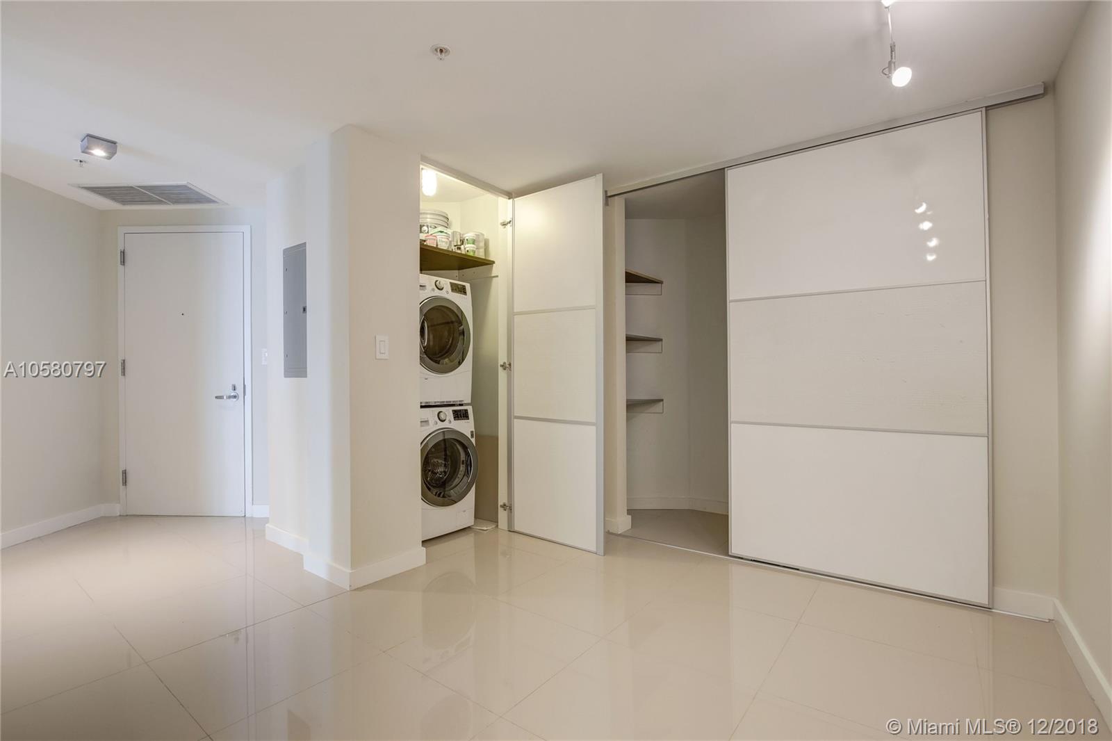 Rarely available, fully remodeled large 1bdrm + large den that can easily be converted into another bdrm or office. This unit is on the 42nd floor with stunning unobstructed views of Biscayne Bay and Miami Beach. The unit boasts of high end porcelain flooring and a remodeled Kitchen island extended with stone counter tops along with Cabinetry to the ceiling, providing additional storage space. The kitchen also has extebded white quarts countertops, high end sliding barn doors and motorized window treatments and a new front end washer and dryer. Luxury amenities include: 24h concierge, valet, convenience store, spa/hair salon, pool, jacuzzi, fitness center, saunas, movie theater and more. Short drive to Brickell, Wynwood, Design District shops and South Beach. Call today, easy to show.