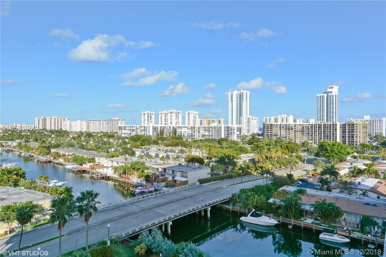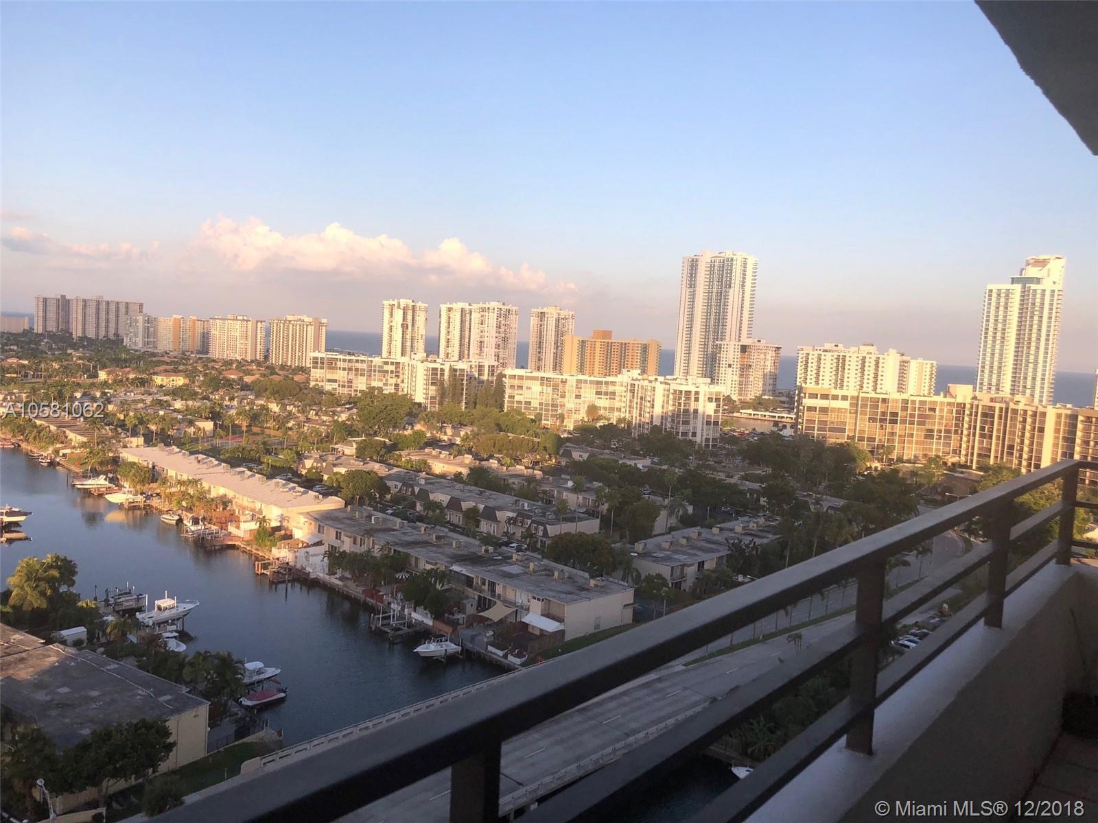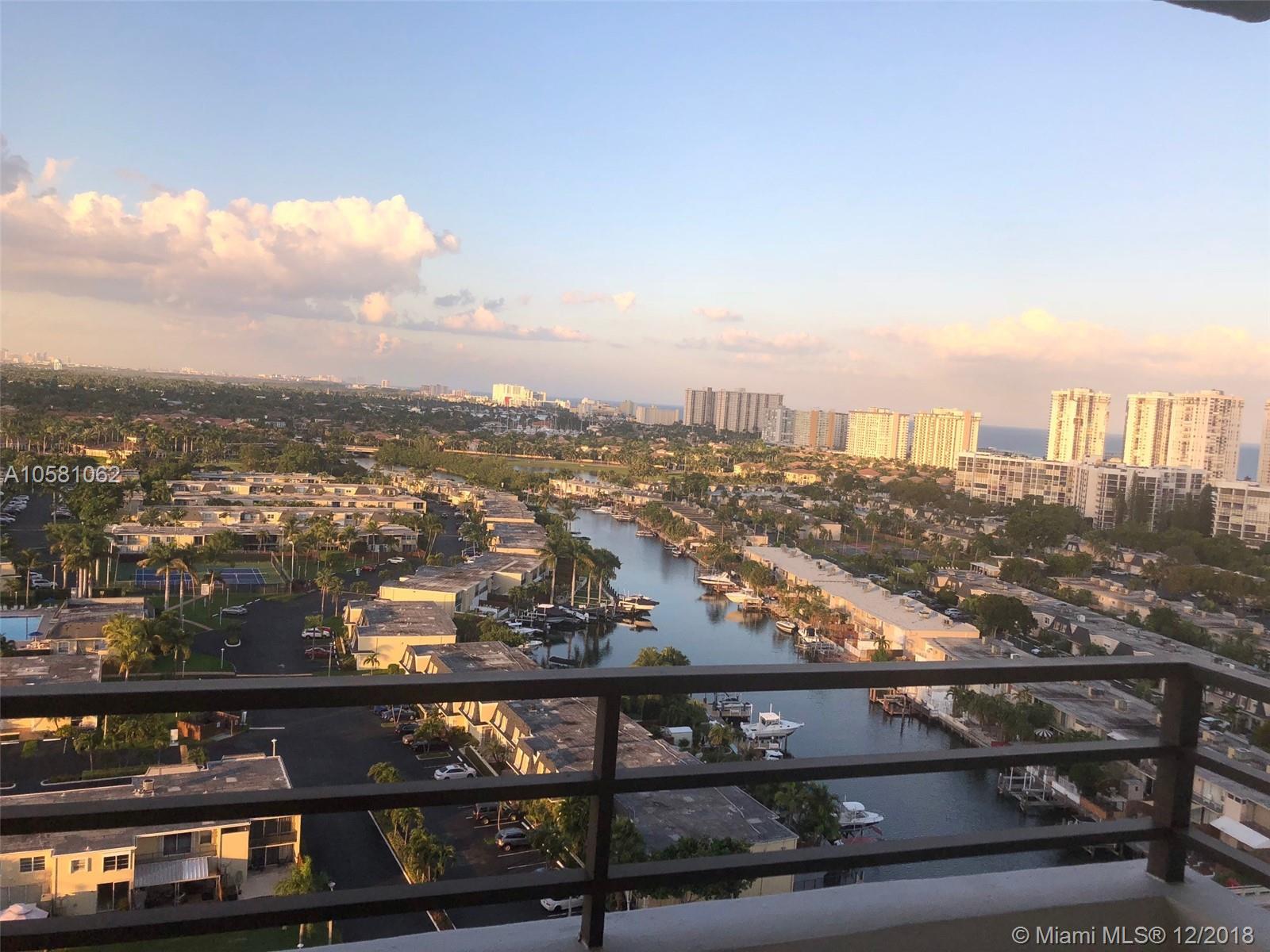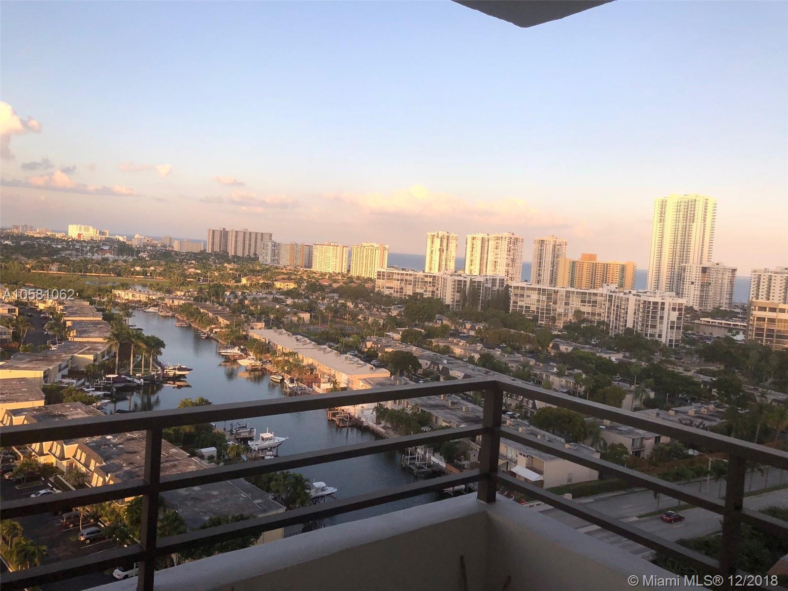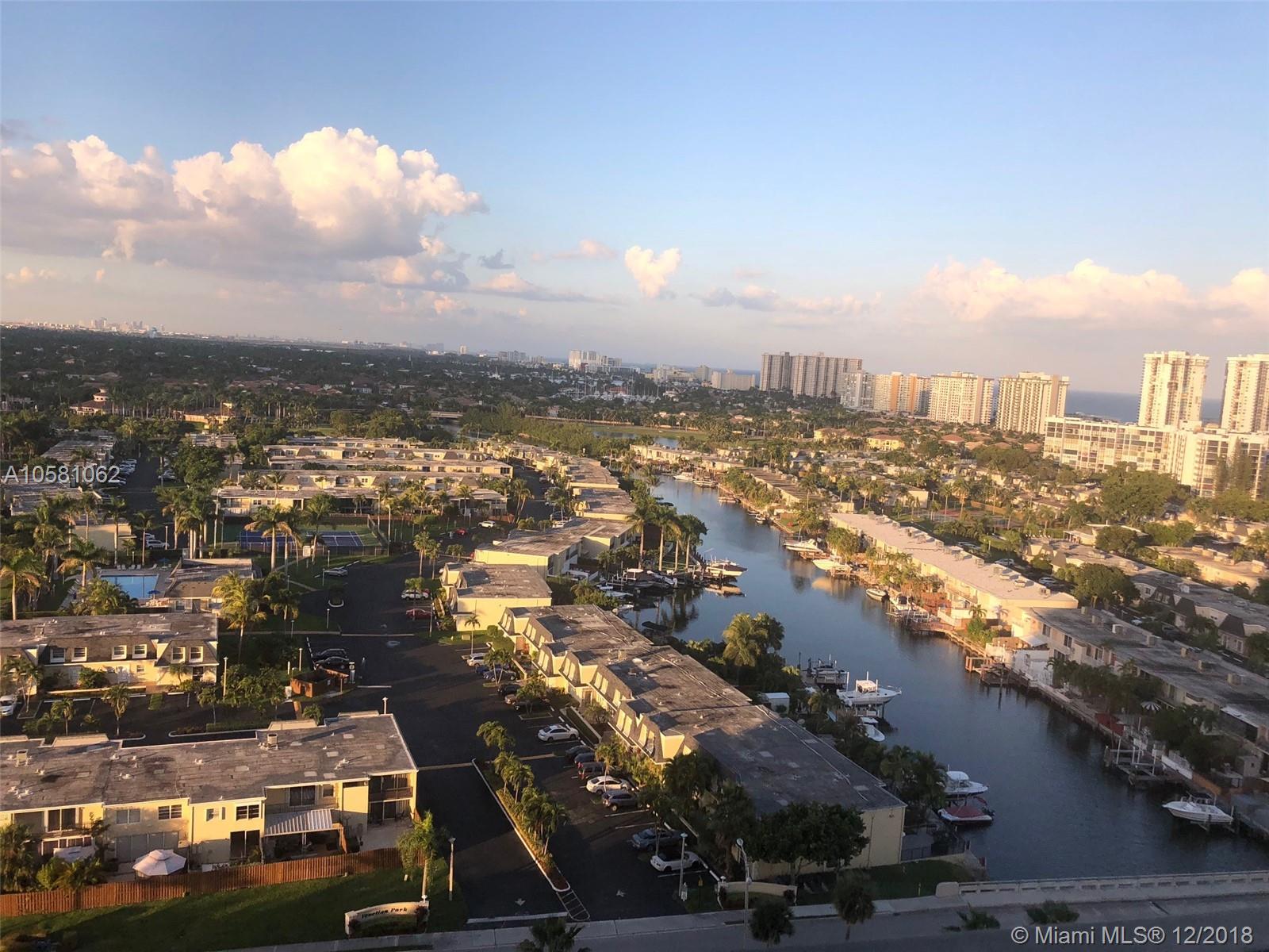 Located in a quiet and friendly building in the heart of Hallandale Beach. This 1 bedroom with 1.5 baths has a NE view of the Canals and Ocean. Minutes from the beach. This high floor unit has a view of the Ft Lauderdale skyline. This is a great apartment. Walk to stores, restaurants and the beach. This building has 24-hour security, Valet parking, 2 pools, boat docks, tennis, a fitness center. Affordable luxury in the best location.