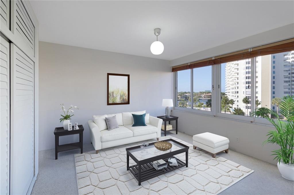 Fabulous two bedroom apartment on the Galt Ocean Mile with incredible Intracoastal view! New hurricane impact windows and doors installed! Located across the street from the beach and walking distance to restaurants, post office, bank, grocery shopping and the water taxi. Watch the boats and yachts pass by in the large 30 x 60 heated and cooled pool directly on the Intracoastal. Low monthly maintenance includes Cable TV, 24 hour security and on site management. Don't miss the best value in Coral Ridge Towers! Association states 55+ no pets, no rentals. You will love living here!