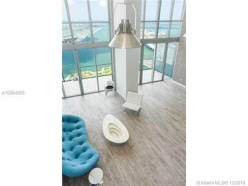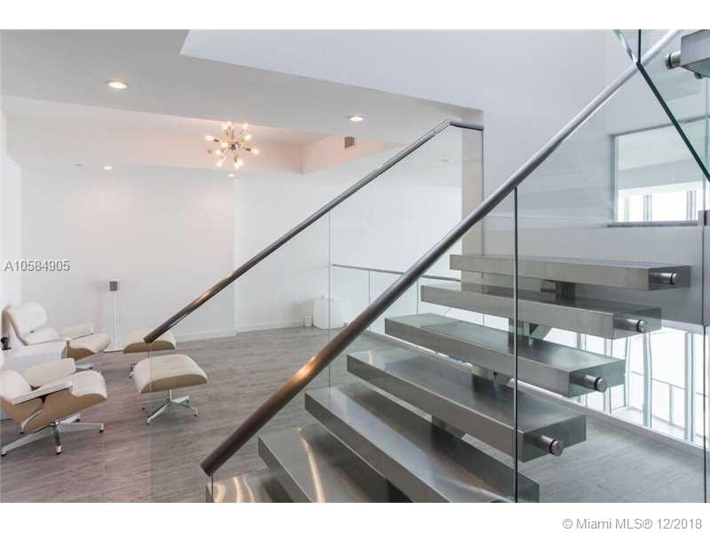 Back to market! Gorgeous three story loft in the sky from 63-65th floors with rooftop terrace(1416 sq/ft.) and Jacuzzi. Invest in a One-of-a-Kind Three Story Penthouse right off the iconic Biscayne Blvd. With less than a handful units from Edgewater to Brickell that have private rooftops that allow summer kitchens and jacuzzi spas; this unit will always be a stand out. Customized floor plan of 2901 interior sq/ft. Two bedrooms with and additional spacious loft that could be converted back into a third bedroom. Stunning multi-level stainless steel and glass cantilevered staircase set against a custom three story concrete finished wall is the centerpiece of this must see penthouse. Four assigned parking spots. Home to acclaimed ME Miami boutique hotel.