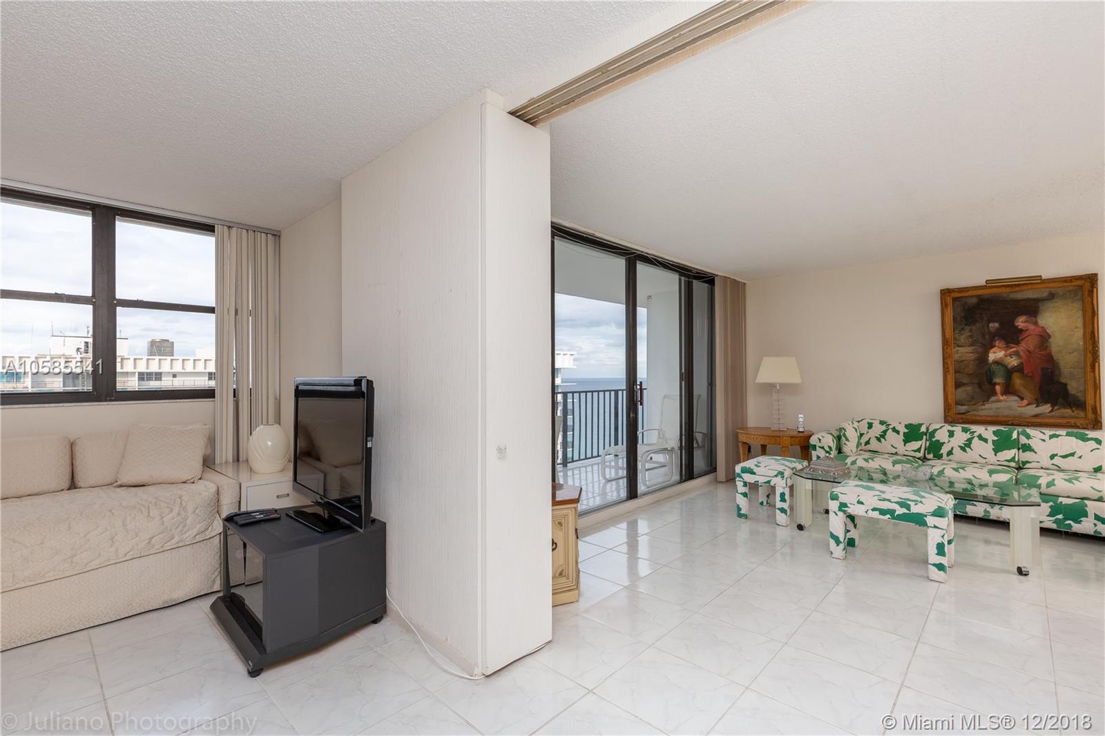 Rarely available penthouse unit in the heart of Hollywood Beach! Don't miss this opportunity to own a top floor unit with incredible ocean, intracoastal and skyline views. Remodel to your taste and enjoy for many years to come! The complex features the resort style amenities;2 swimming pools, 2 gyms, 2 saunas, a restaurant, kids room, billiards and ping pong, brand new salon, business center, free zumba, yoga, aqua aerobics, 24 hr. security, and much more. Walk to the famous Hollywood Broadwalk. Sold AS IS. Electronics and the living room painting are excluded.