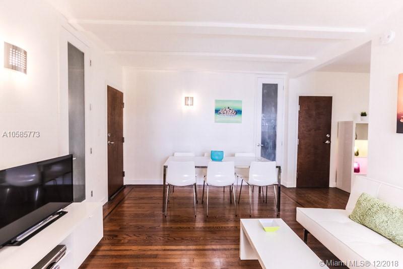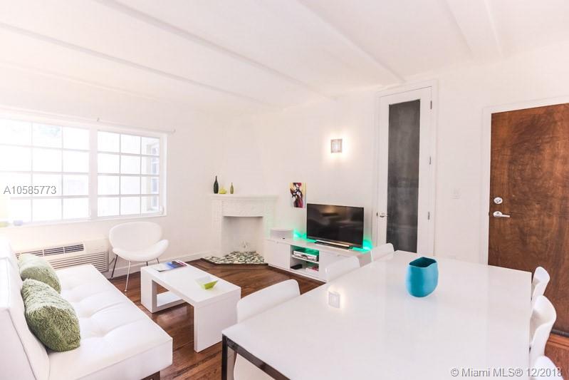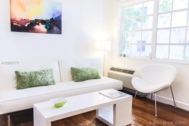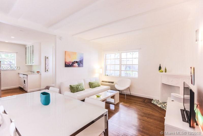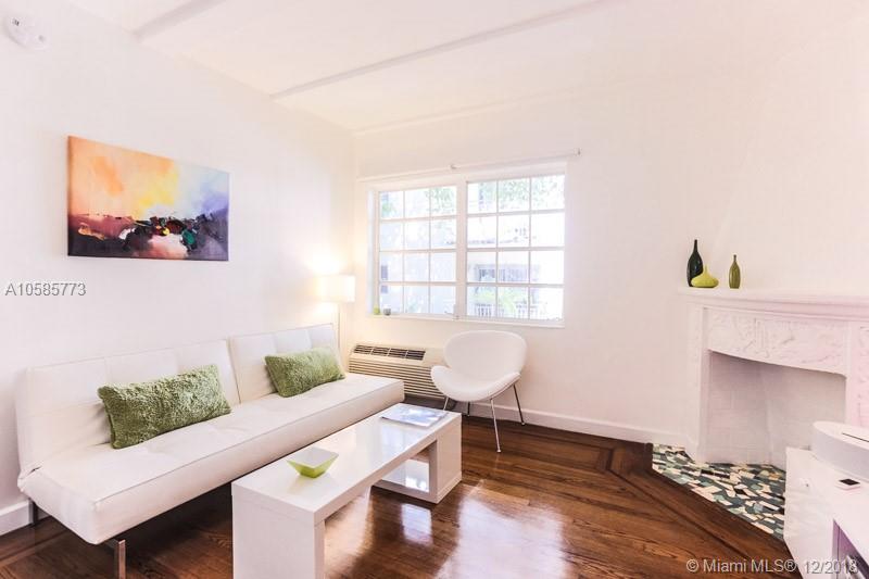 GREAT INVESTMENT, rents very easily, or Perfect pied-a-terre! Recently renovated, Fully Furnished & Equipped (towels, sheets, silverware,...) Tastefully decorated loft style 1 Bedroom (open bedroom can be easily closed off/ County records shows as 1BR) Centrally located 2 blocks from Lincoln Rd and 4 blocks from the Beach. Beautiful hardwood floors, modern furniture, Sony 40" Flat Screen TV, LG Music Dock. Granite counter tops, Stainless Steel appliances with gas stove and in-unit Washer/Dryer combo. Upgraded bathroom. New A/C unit. Unit is currently rented at $1400/month (w/60 days kick out clause).