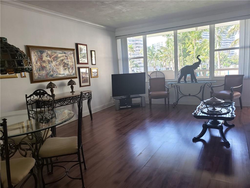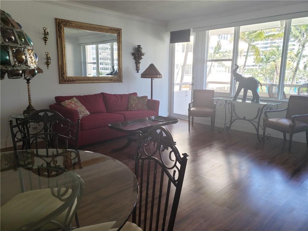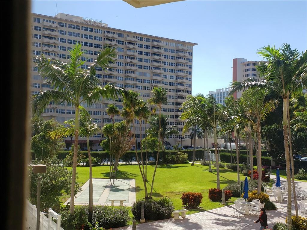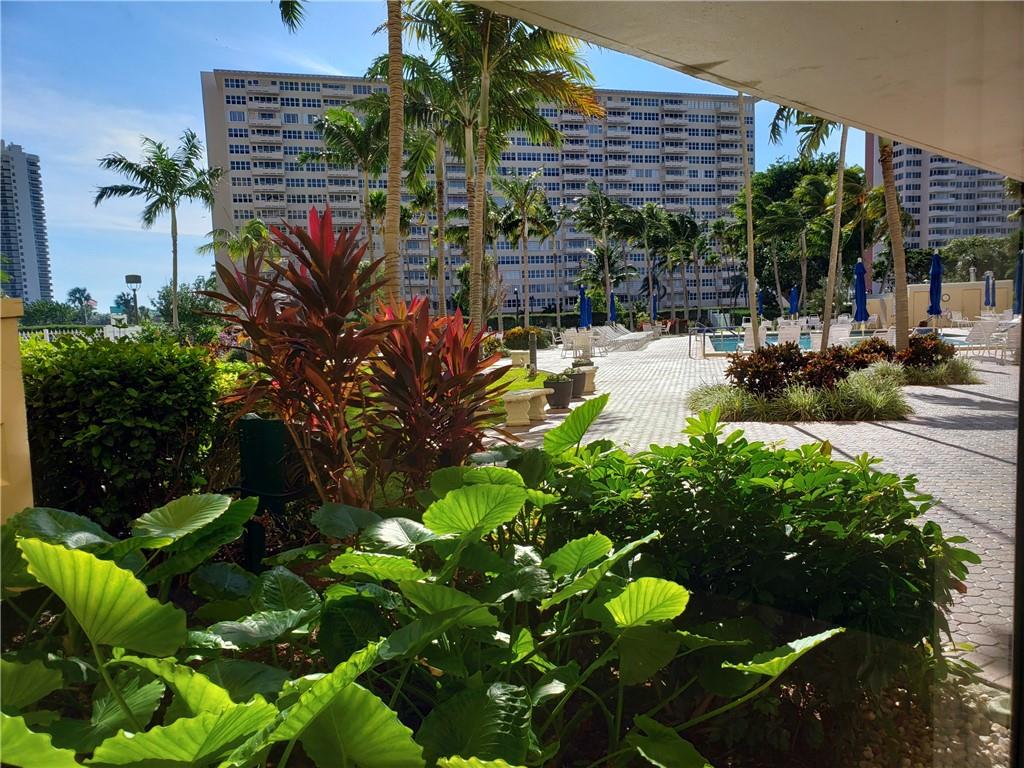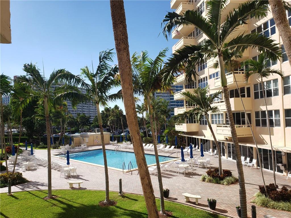 Elegant tropical resort like 1 bedroom condo with views of immaculate garden and pool. Improvements include an updated fresh paint, kitchen and bath, laminate floors and impact windows throughout. Spacious unit with ample storage. Furnished. Short distance from Fort Lauderdale beach, shopping and all amenities. Complex features heated pool, community room, new gym, clubhouse, parking, shared laundry. Assoc. says 55+, Annual Gross Income Reqt $38K with 700 Credit Score, no pets, no rentals.