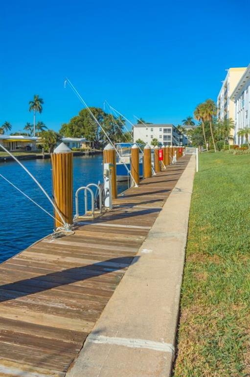 Live on the water & across the street from the beach! This quaint community features, private beach access, boat dockage under $1,000 annually with No fixed bridges & close to Inlet, large heated pool, gym & sun deck. The building had over 1.5 million dollar renovation for its 40 year inspection & all assessments Paid. This remodeled ground floor, canal view, 2/2, dockside direct access condo is turn key. It has hurricane impact throughout & New Sunroom. Rec lease paid is worth 45k, Low HOA fee, Boat Dockage max is 26ft, Dock space available, Close to all attractions & restaurants. Come & relax its easy to view.