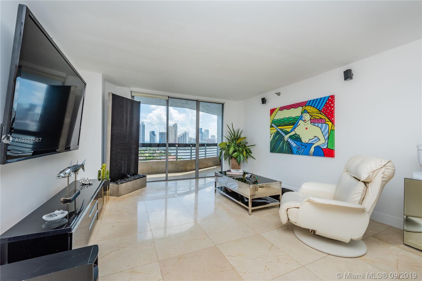 Beautiful views of the Intracoastal pool lake and tennis courts, Very bright unit with an open floor plan and lots of natural light. Separate laundry area. Mystic Pointe is an all-inclusive gated community providing an active lifestyle w/ pool, spa, tennis courts, walking paths, gym & conveniences of dry cleaning, market, salon & more. 3 min to Aventura Mall, 5 min to beach.