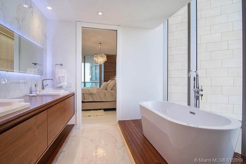 Stunning designer furnished residence at St. Regis. Enjoy the ultimate luxury and pristine 9 acres of oceanfront living, 5-Star resort amenities, 12.000 sq/ft remedy SPA, 4 pools, 3 restaurants, and a spectacular direct ocean view, 24-hr hotel, signature butler service and concierge services offer impeccable attention day or night. 2bed/2baths, powder room, white porcelain floors. Must see, easy to show!